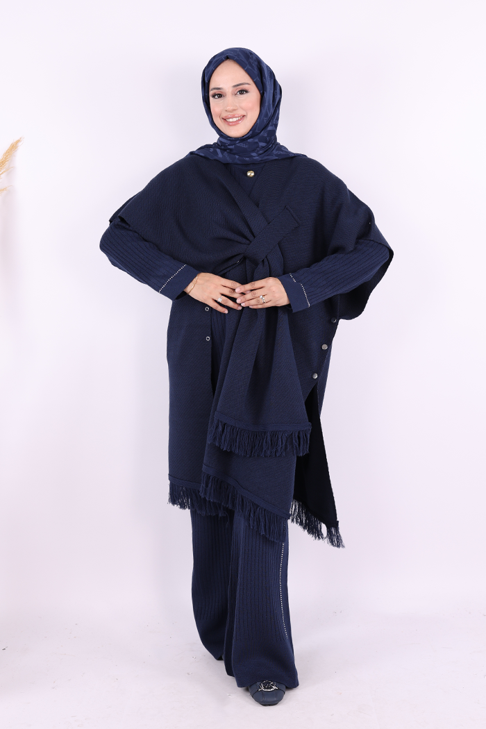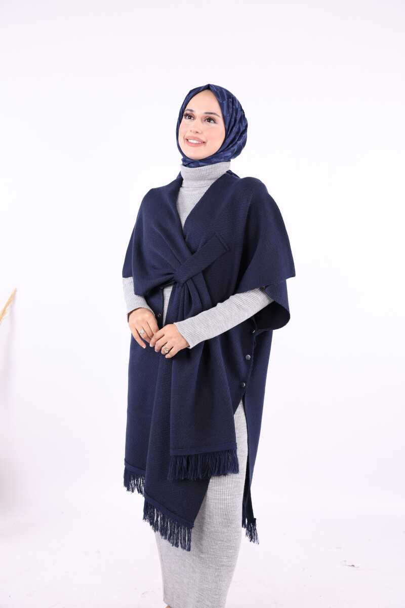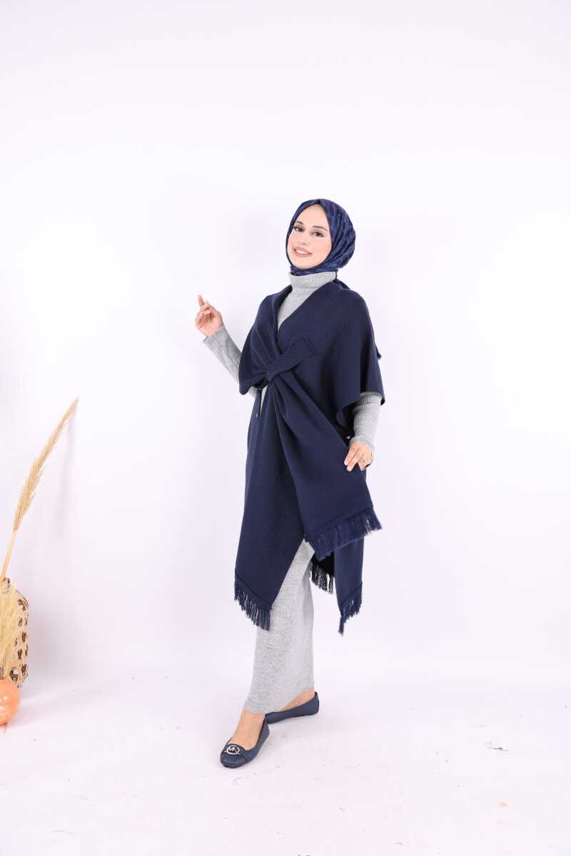 Şal Bağlamalı Triko Panço 12630 Lacivert
