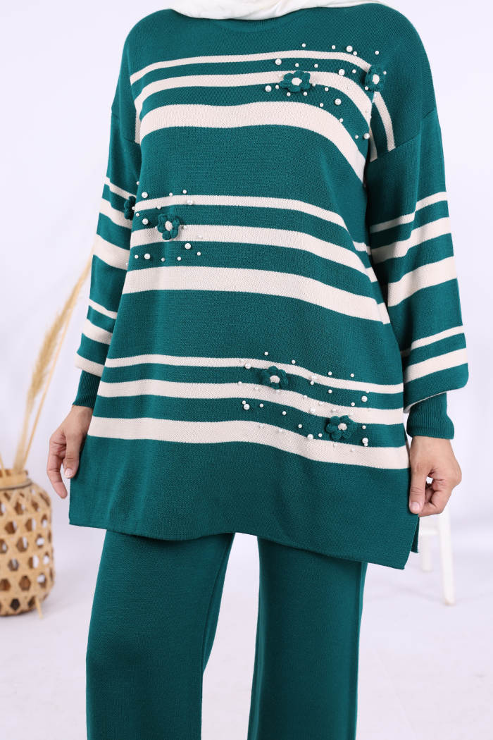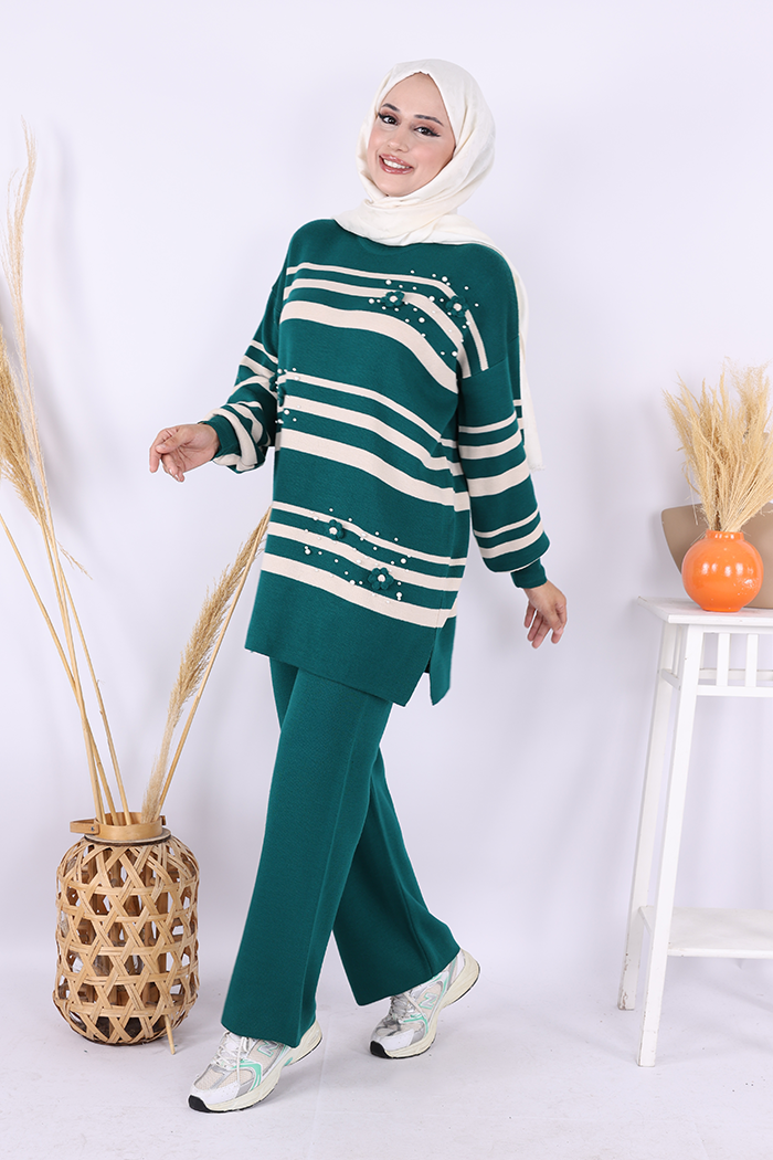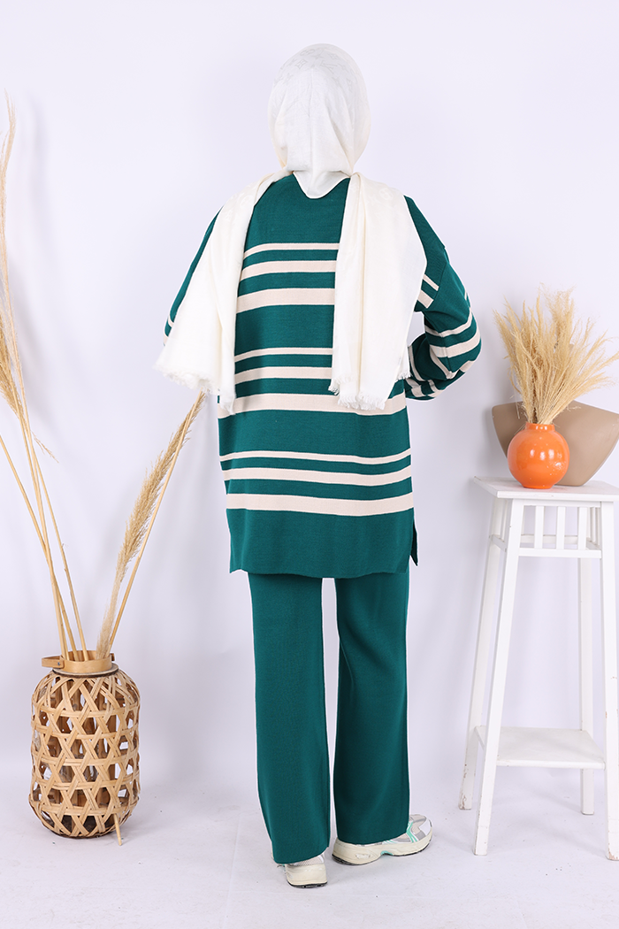 Çizgili Triko Takım 1635 Zümrüt