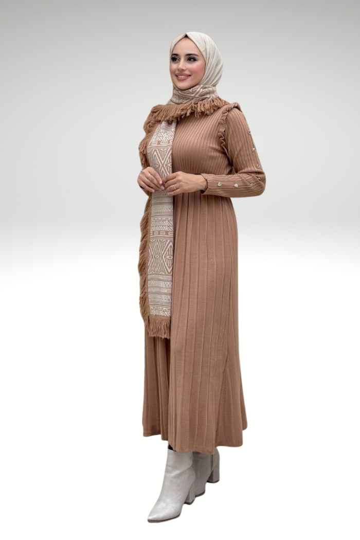 فستان التريكو له مظهر مخطط. أجزاء الكتف مكشكشة. تحتوي على تفاصيل معدنية أساسية على أذرعها. ولها نصف رقبة. لديها حزام الخصر. إنه منتج تريكو من الدرجة الأولى. مقاس 36/44 متوافق مع المعايير. أبعاد المنتج: الكتف 41 سم الكم 61 سم العضلة ذات الرأسين 30 سم العرض 104 سم الخصر 96 سم الطول 132 سم