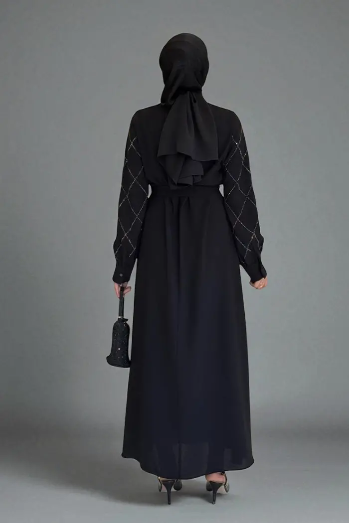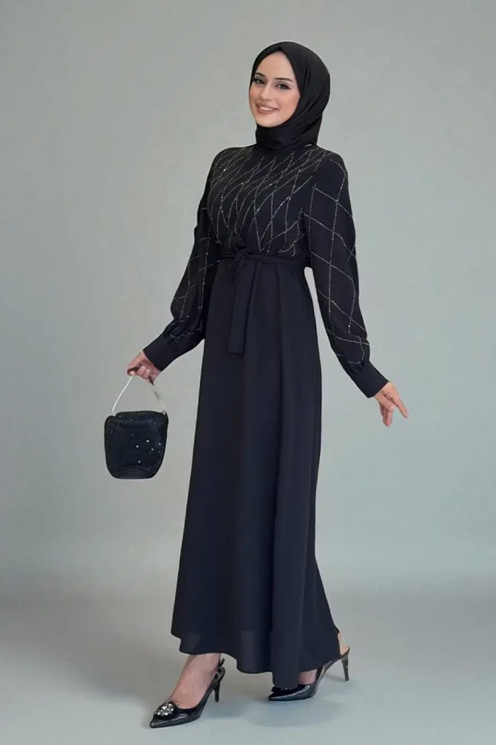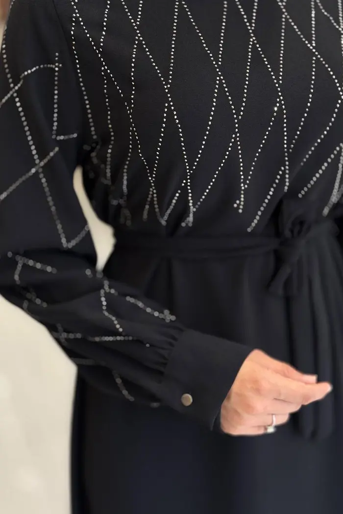 TAŞ İŞLEMELİ KUŞAKLI DÜĞMELİ ELBİSE