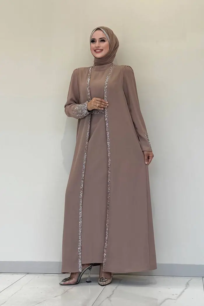 TAŞ İŞLEMELİ YELEKLİ ELBİSE TAKIM: