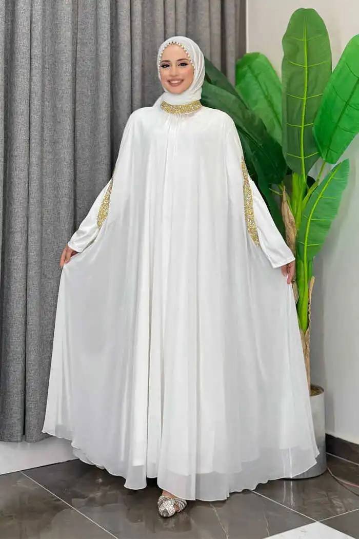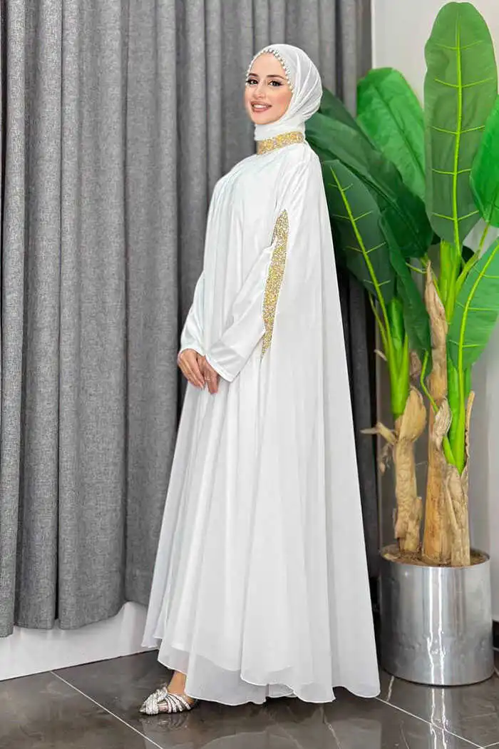 Abayası Şifon, Elbisesi Sandy Kumaştır.