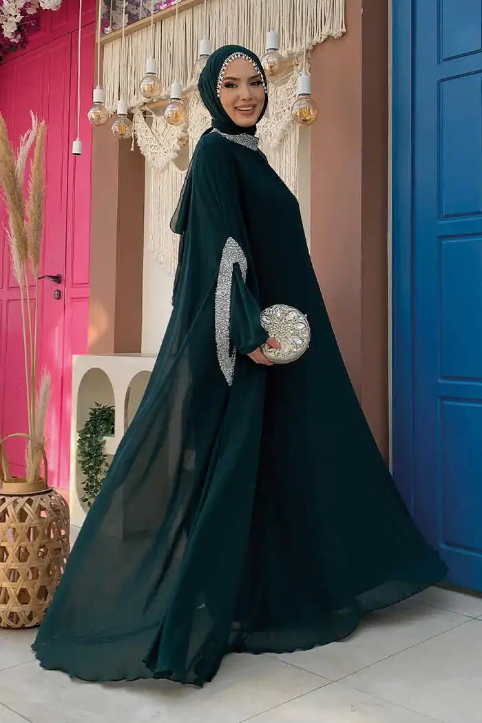 Abayası Şifon, Elbisesi Sandy Kumaştır.