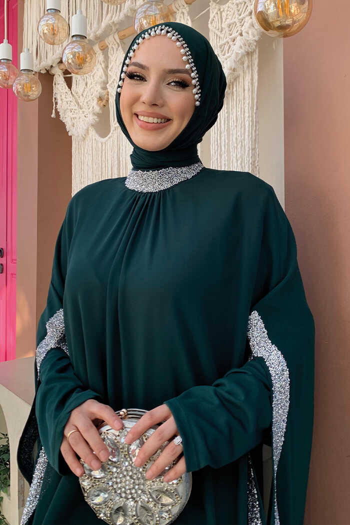 TAŞ İŞLEME DETAYLI ELBİSELİ PELERİN TAKIM