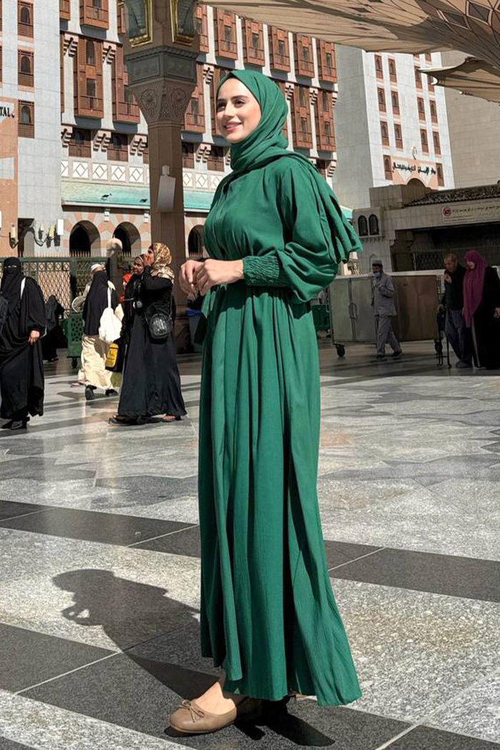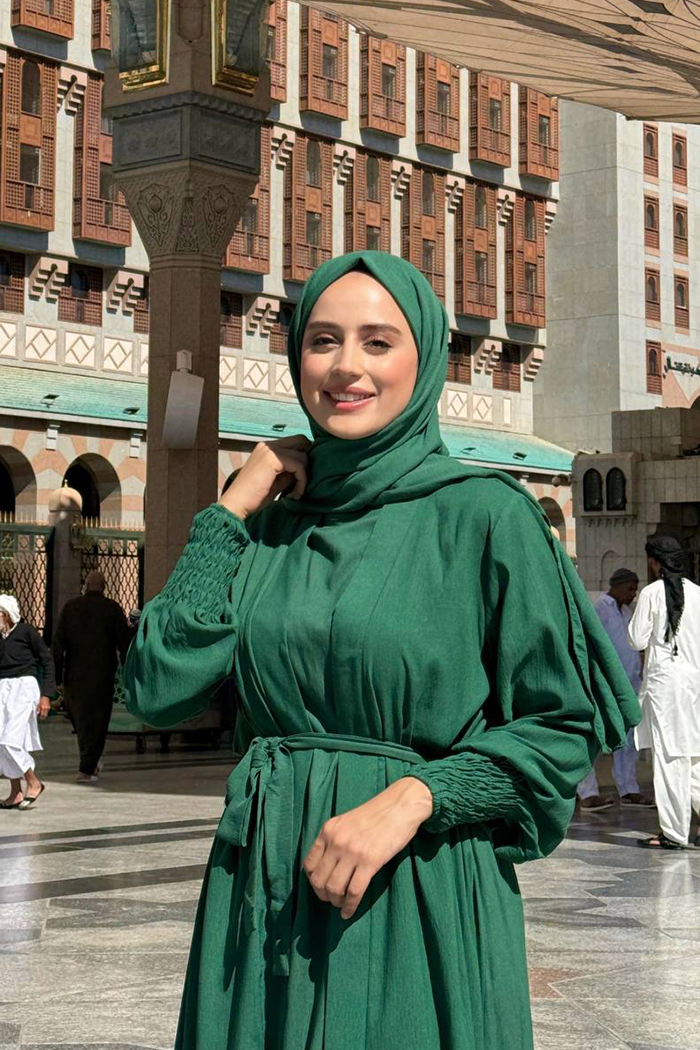 Şallı Elbiseli Abaya Takım 3883 Zümrüt