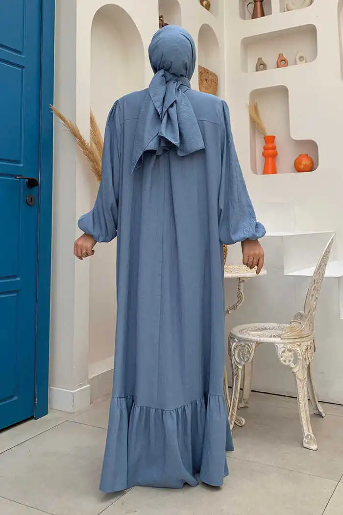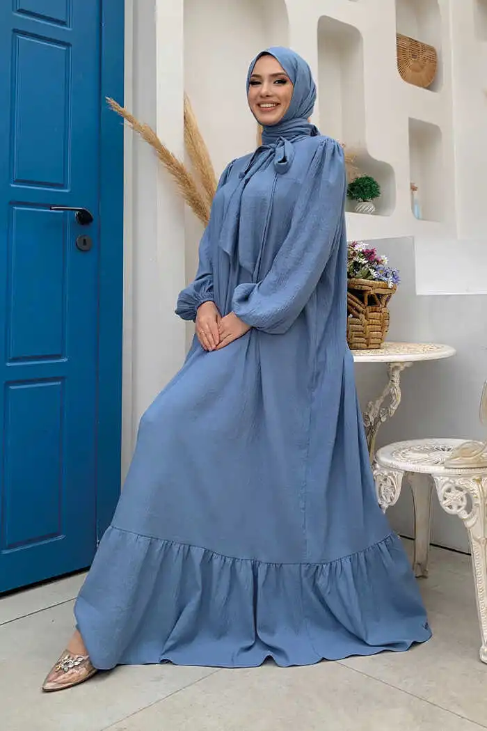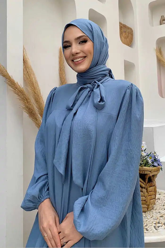 YAKASI BAĞLAMA DETAYLI ŞALLI ELBİSE: