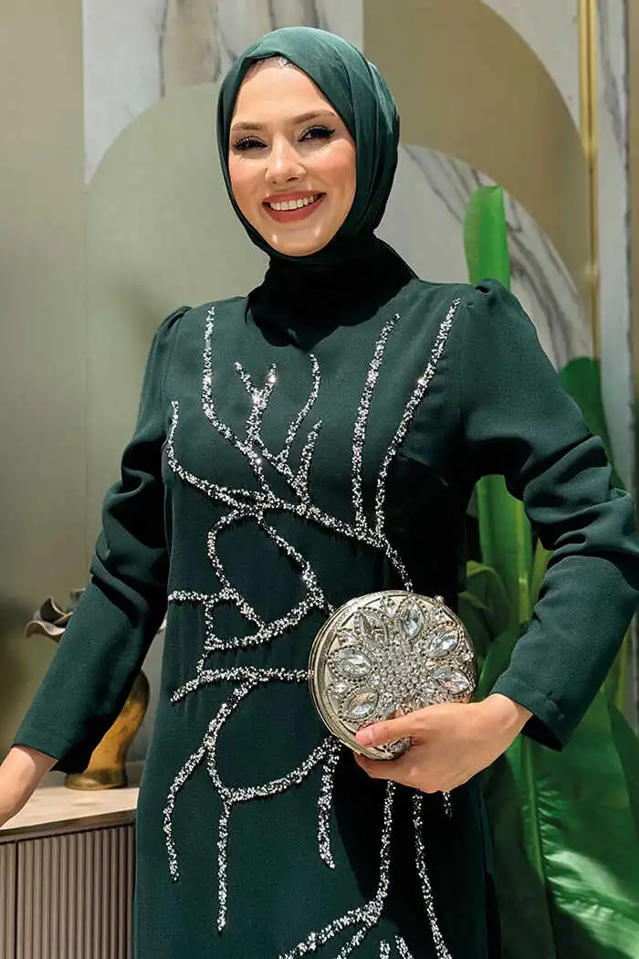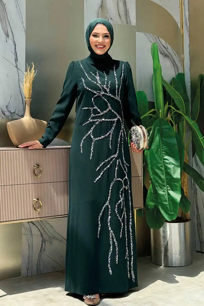 TAŞ İŞLEME DESENLİ ELBİSE: