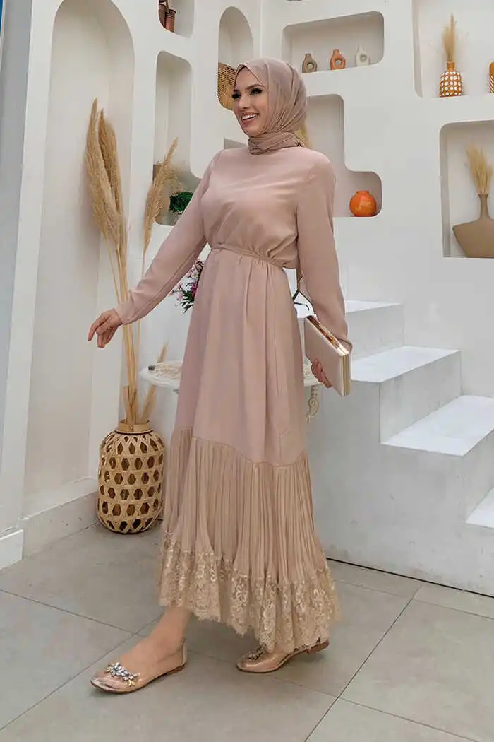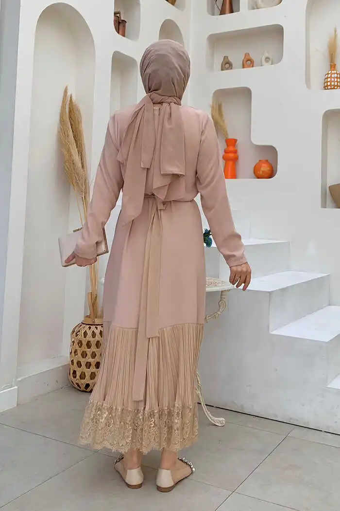 ETEK UCU PİLİSELİ DANTEL GÖRÜNÜMLÜ ELBİSE: