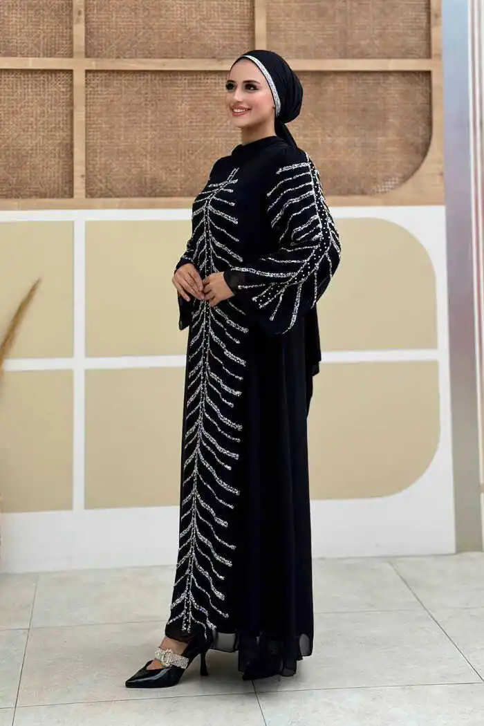 Taş Detaylı Abiye Elbise 3915 Siyah
