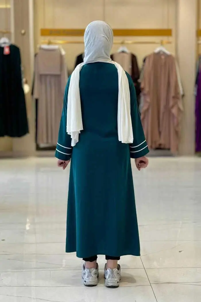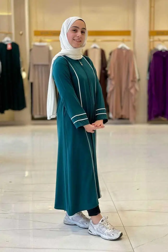 Fermuarlı Biyeli Çocuk Feracesi 6031 Zümrüt