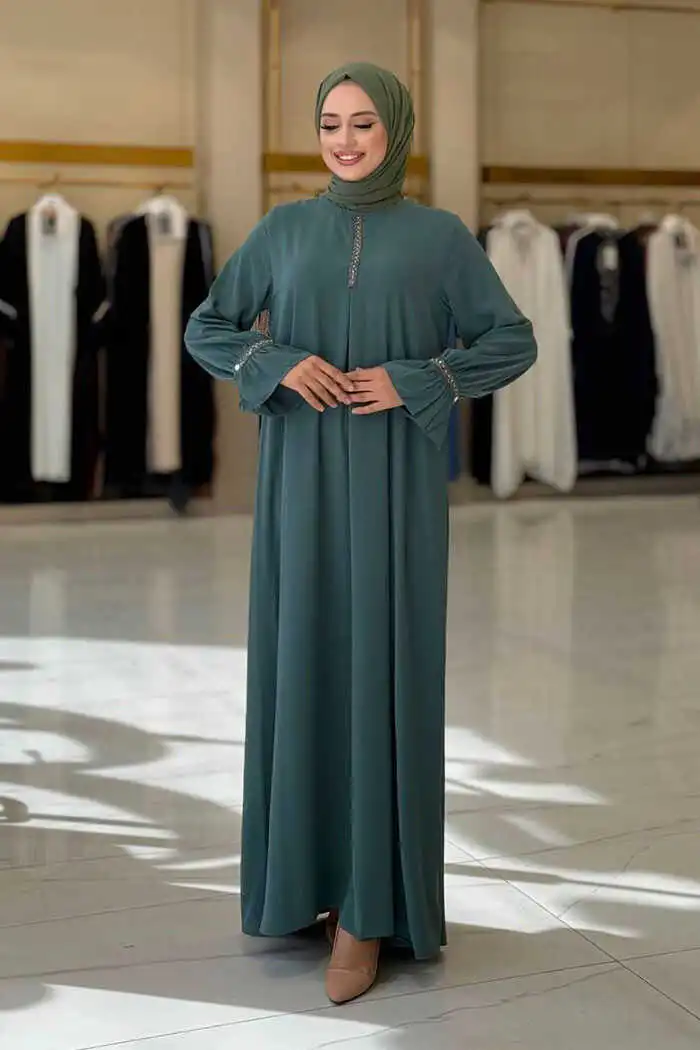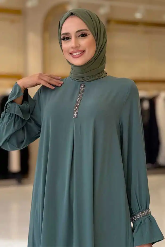 Kol manşetleri ve yaka ön taş detaylıdır.