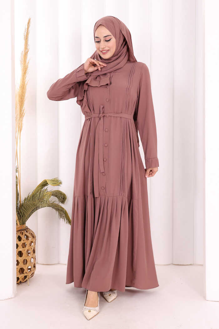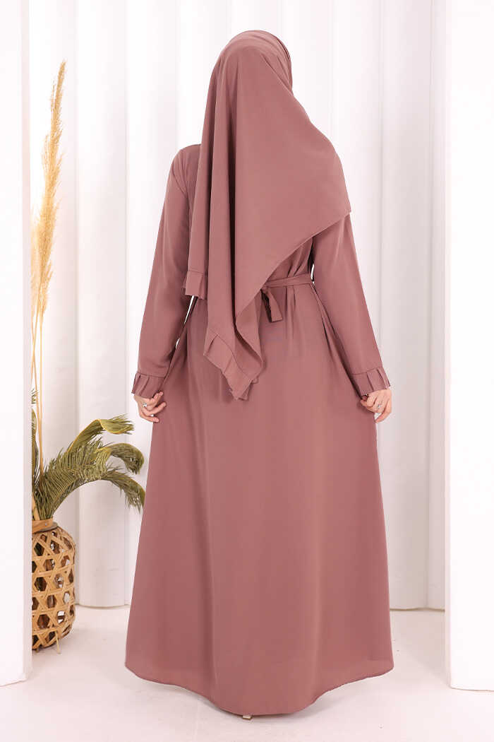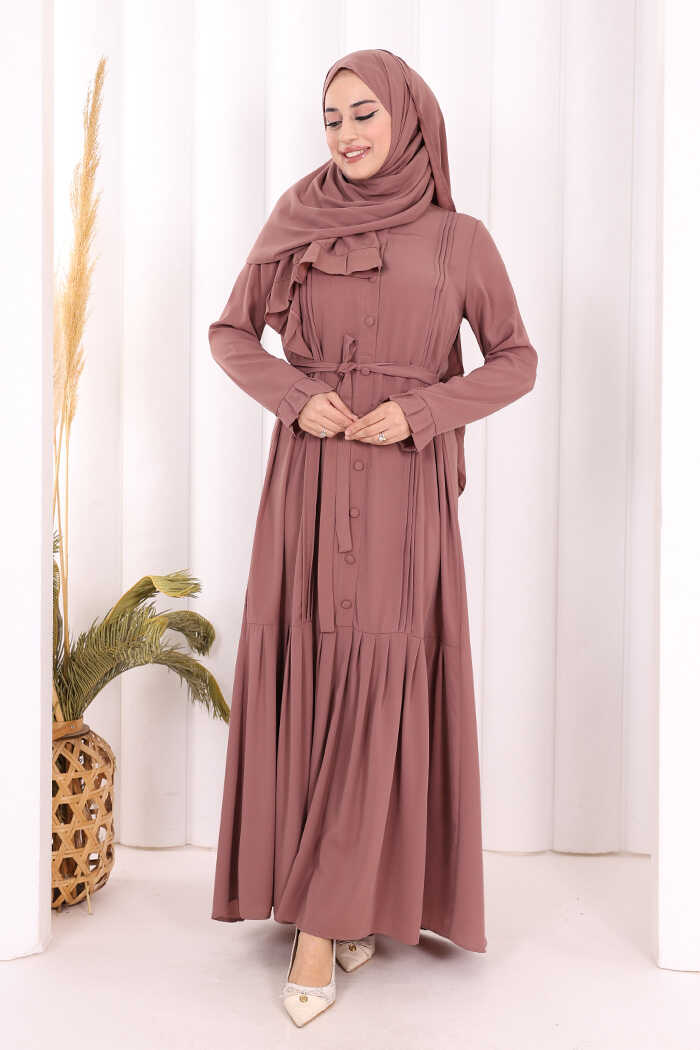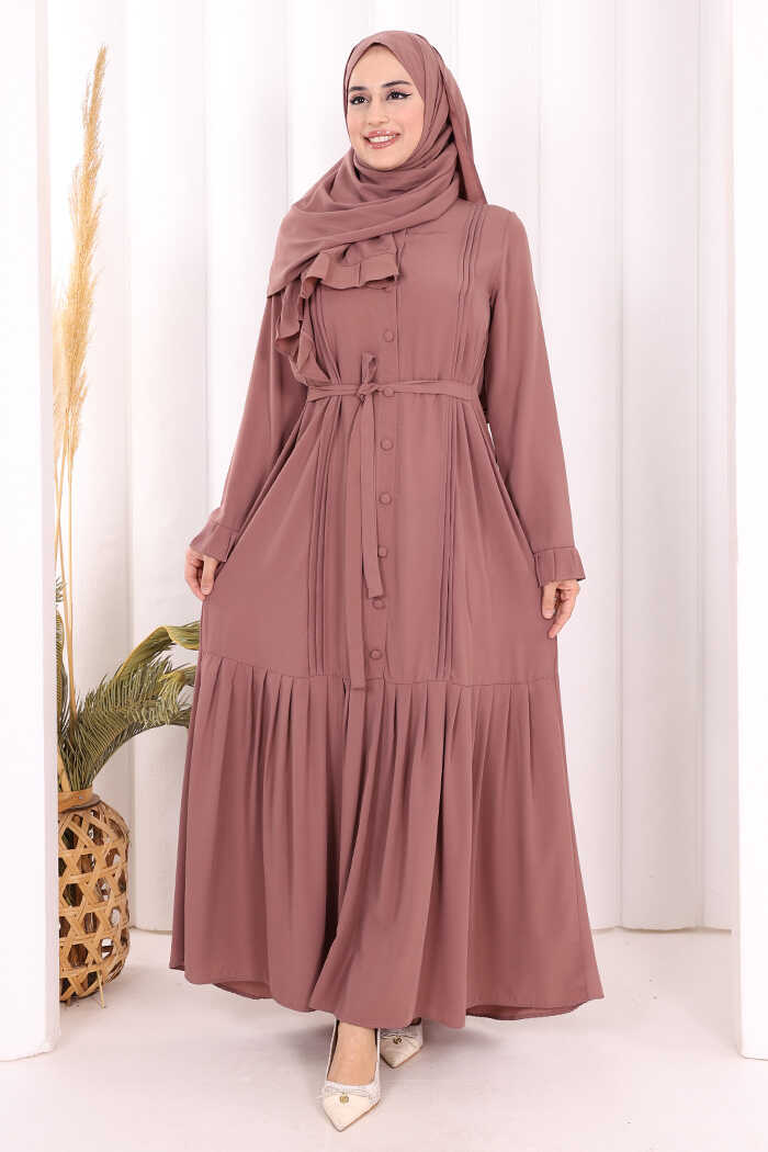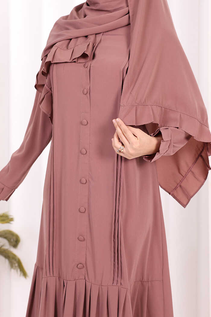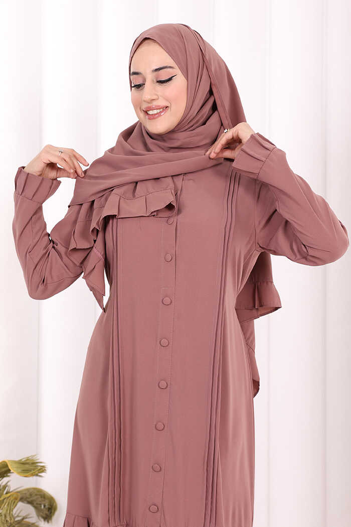Pilise Detay Elbise ŞAL HEDİYE 6039 Gül Kurusu