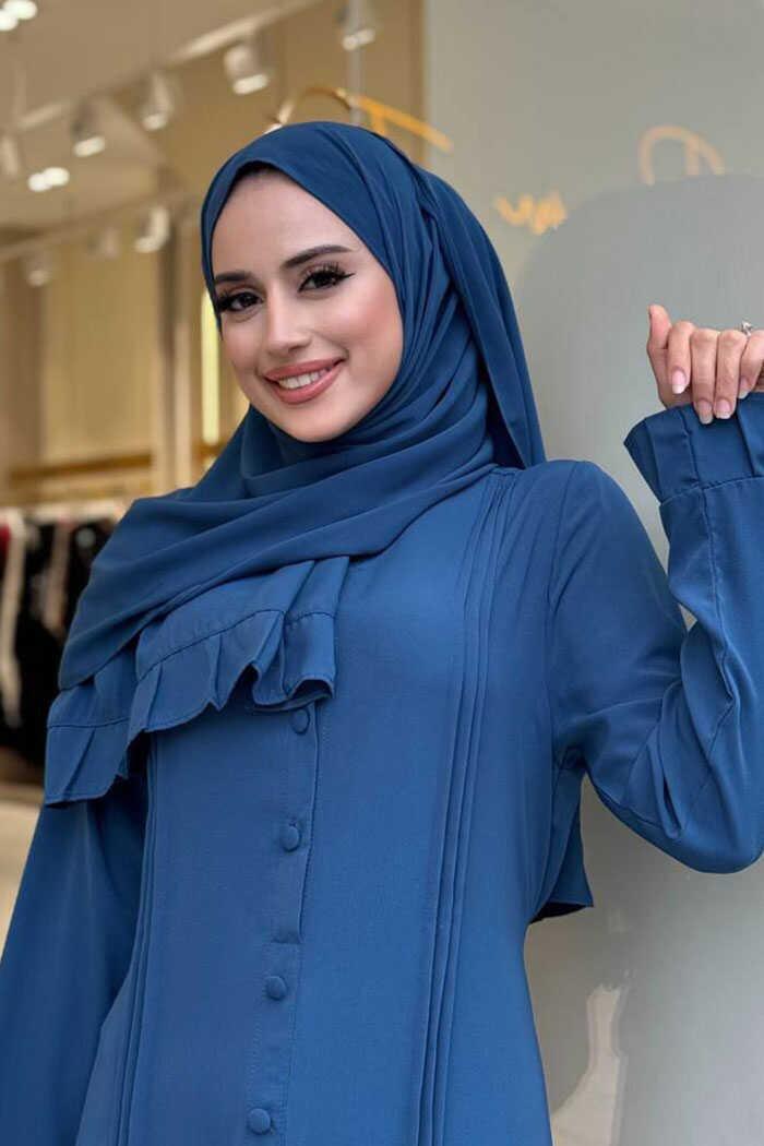 Pilise Detay Elbise Şal İkili Takım 6039 İndigo