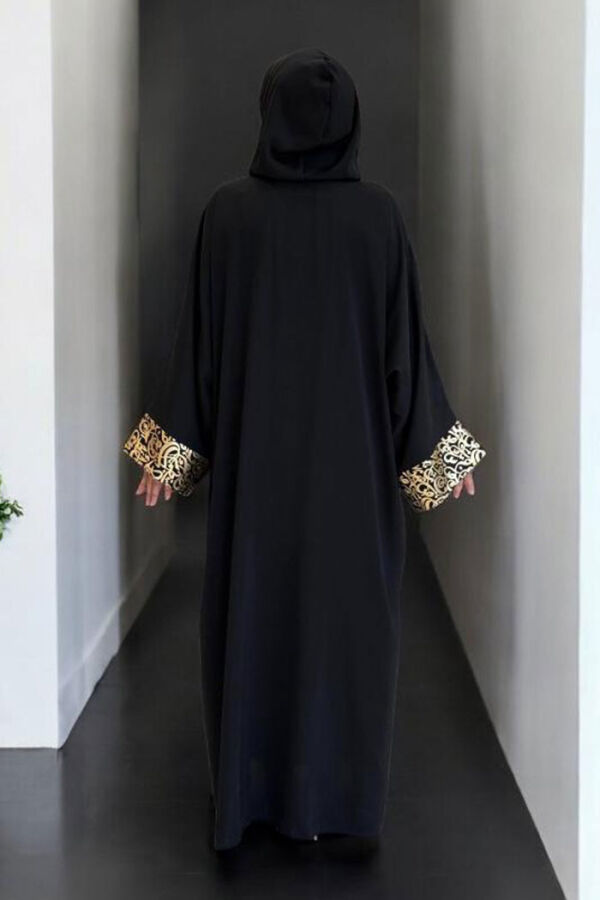 Arapça Harf Baskılı Abaya 70014 Siyah
