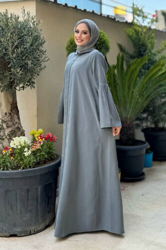 Fermuarlı Kapüşonlu Ferace 70016 Füme