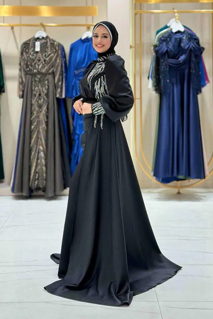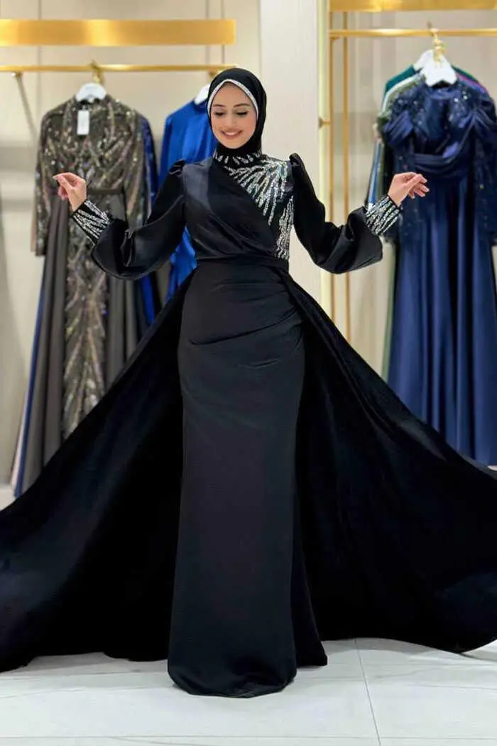 Taşlı Kuyruk Detay Abiye Elbise 7044 Siyah