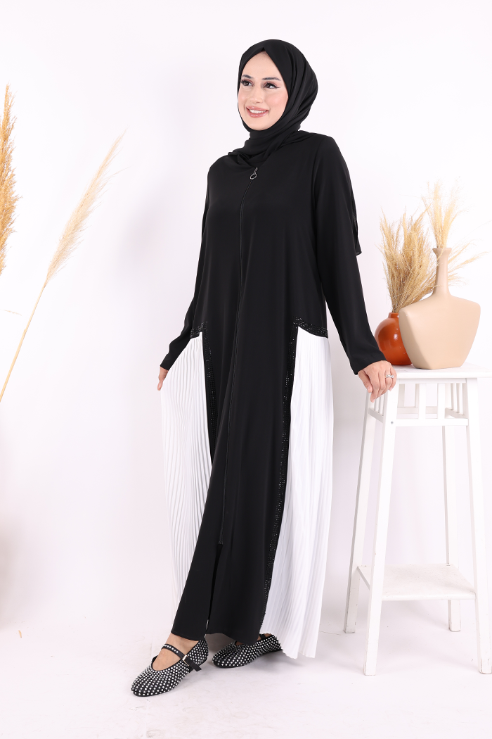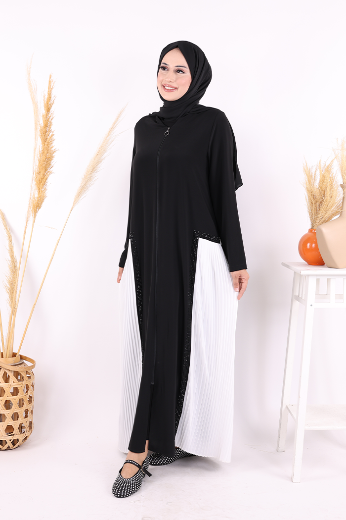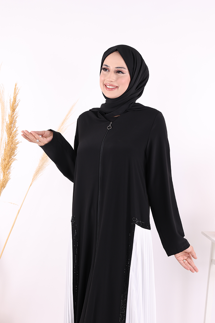 PİLİSELİ TAŞ DETAY FERMUARLI FERACE