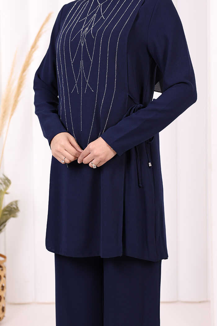 Taş Baskı Desenli Tunik Pantolon Takım 8447 Lacivert