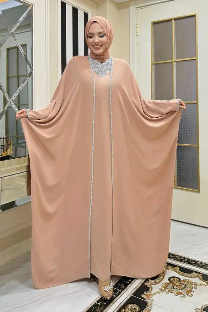 TAŞ İŞLEME DETAYLI ELBİSELİ PELERİN TAKIM