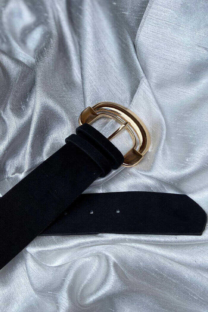 تفاصيل الحزام بإبزيم معدني. قابل للتعديل حسب العرض. نسيج من جلد الغزال. يناسب ما يصل إلى 42 مقاسًا. أبعاد المنتج: الارتفاع 98 سم