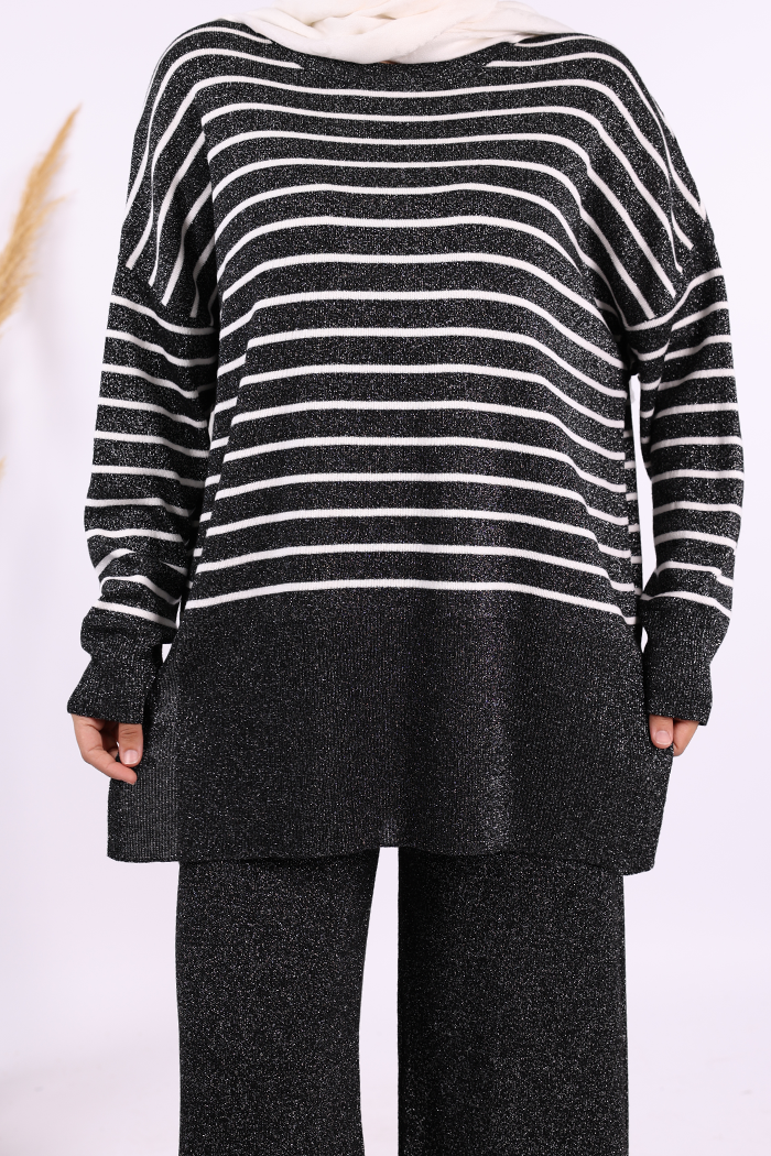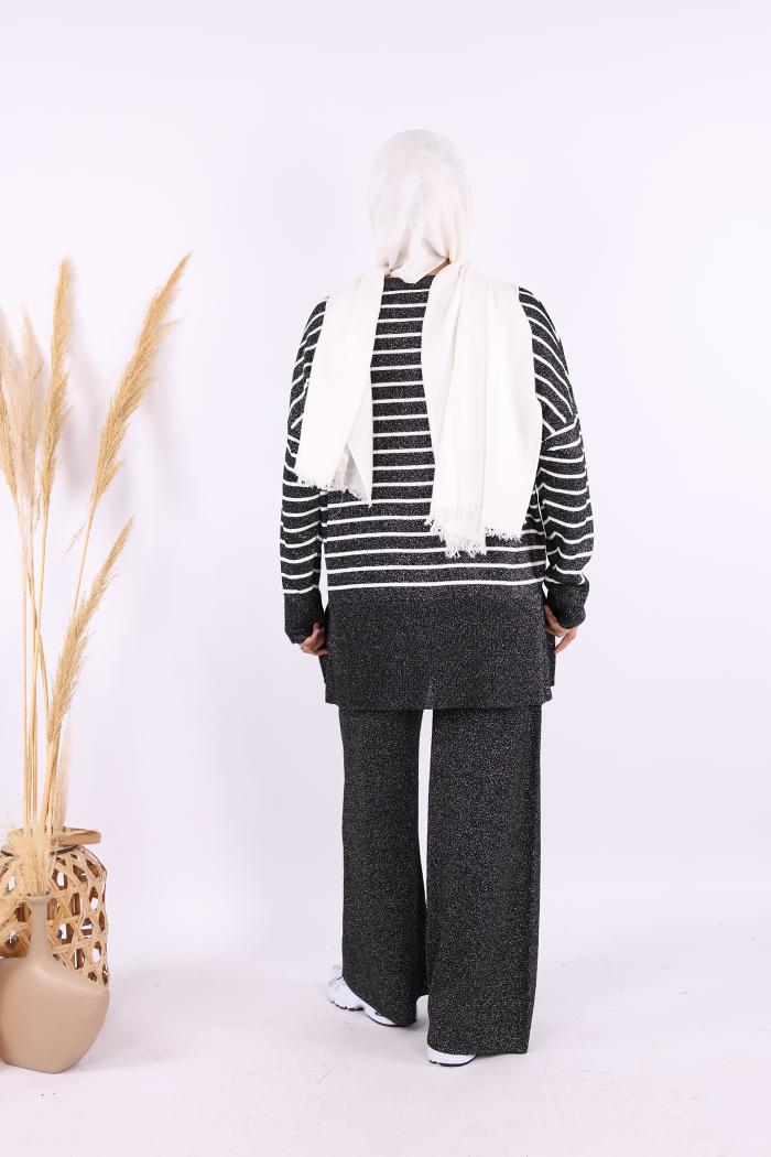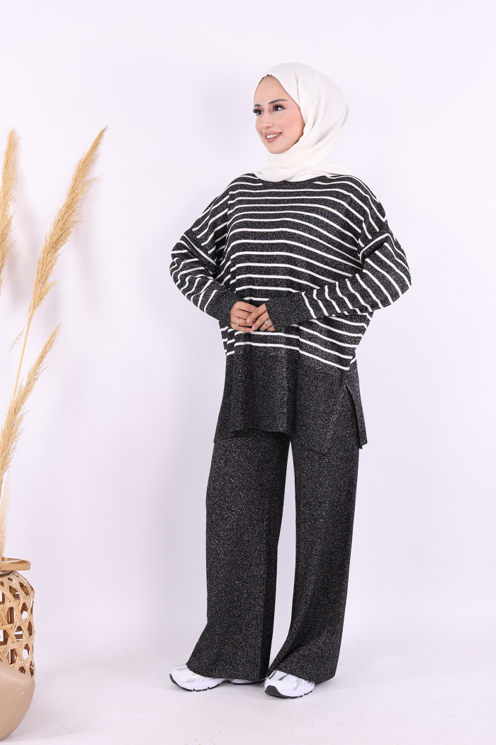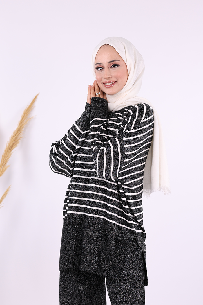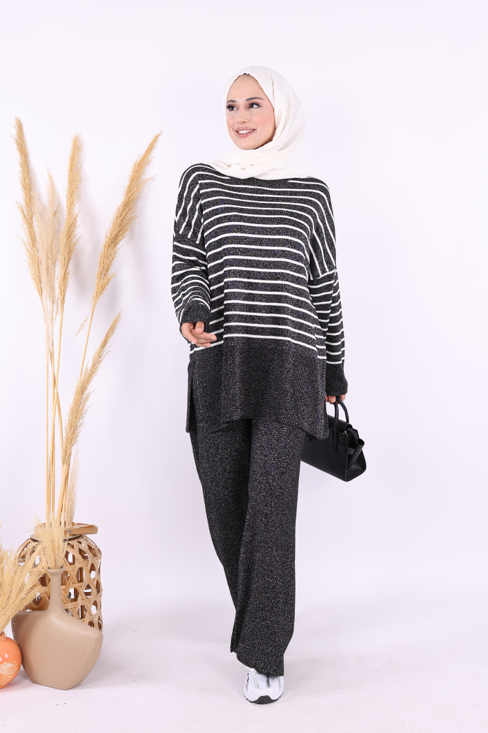 9408 Simli Çizgili Triko Takım Siyah