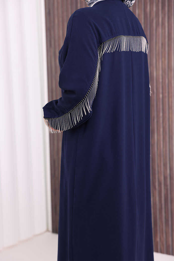 Arkası Zincir Püskül Detay Boydan Düğmeli Yarasakol Ferace 7822 Lacivert