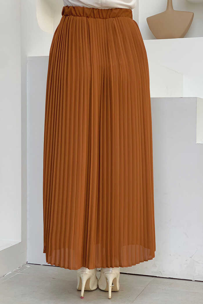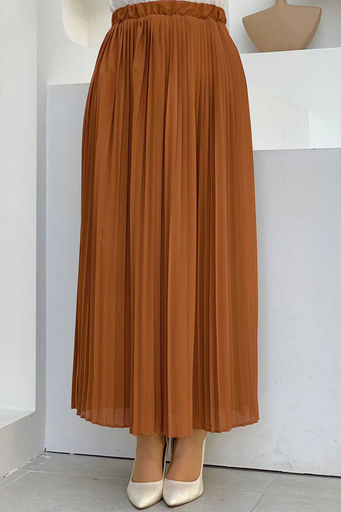 تنورة شيفون مبطنة بخصر مطاطي 1152 أسمر