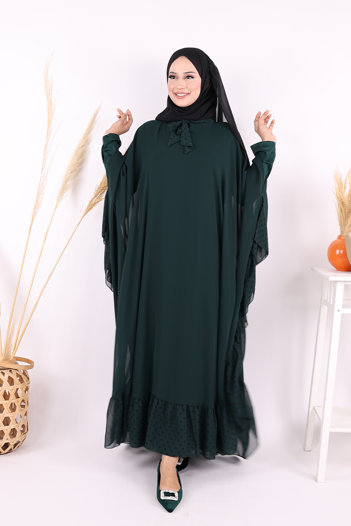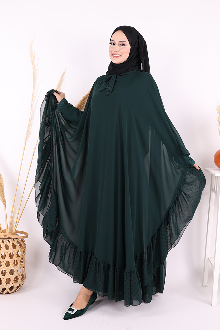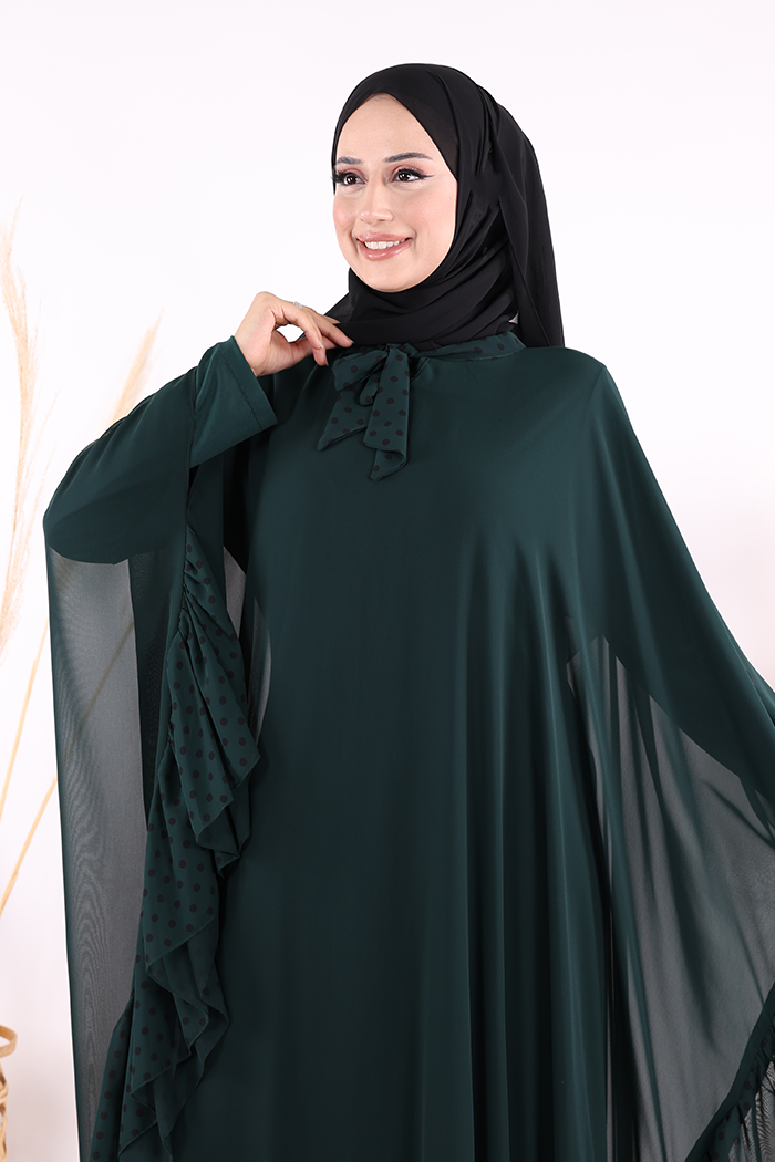 Benekli Yaka Detay Şifon Pelerinli Elbise Takım 3643 Zümrüt