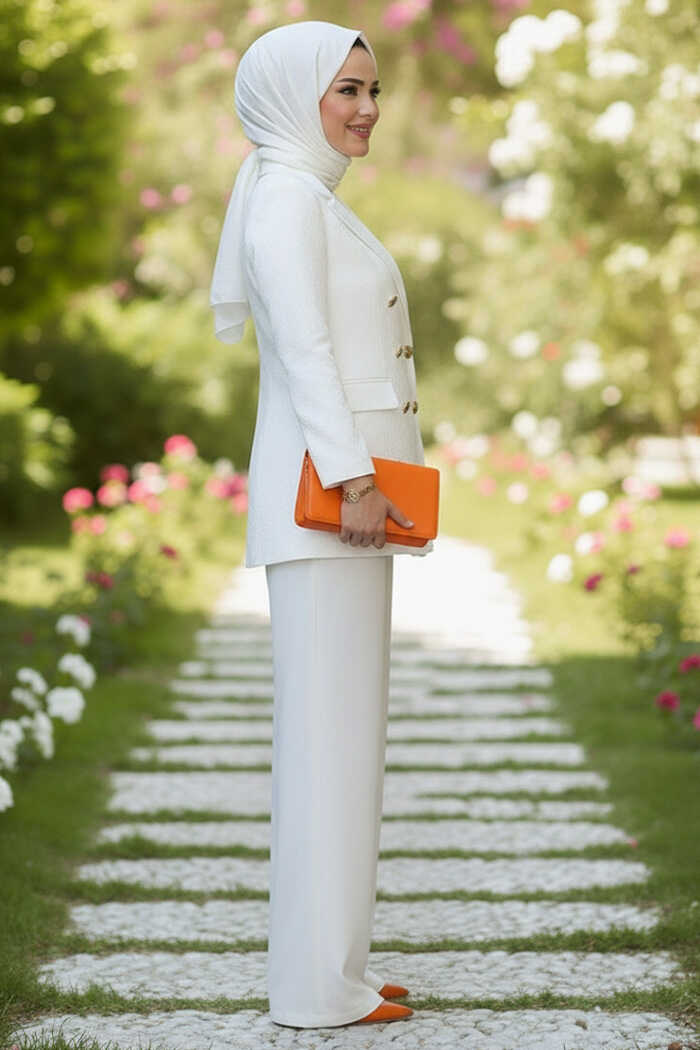 جاكيت بليزر بتفاصيل أزرار وبنطلون بدلة فضفاضة 8302 إكرو