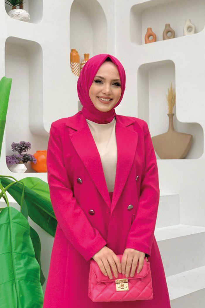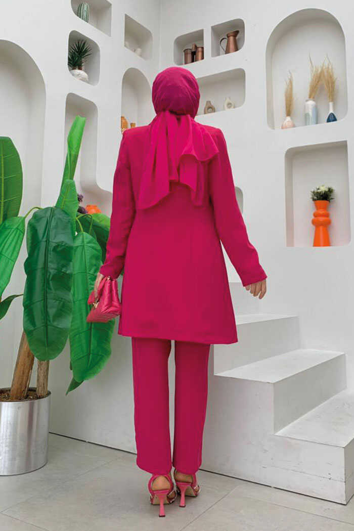 بدلة بنطال وسترة قصيرة بأزرار 8352 فوشيا