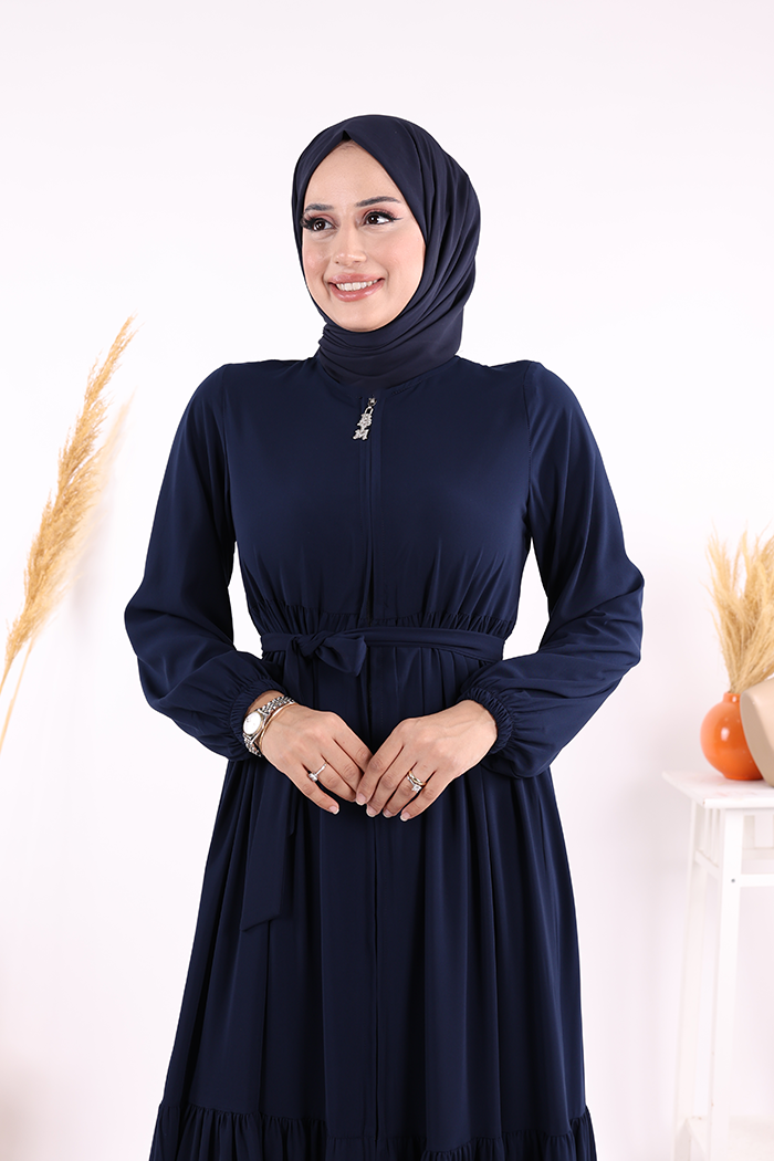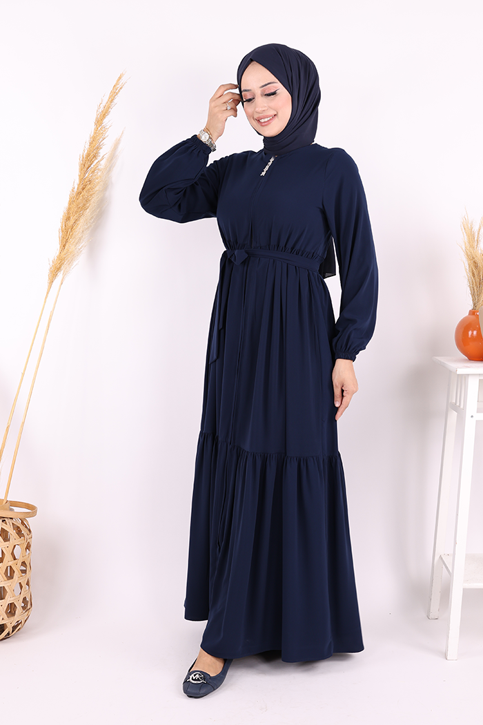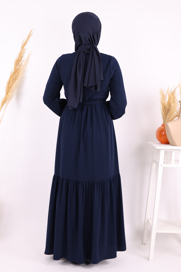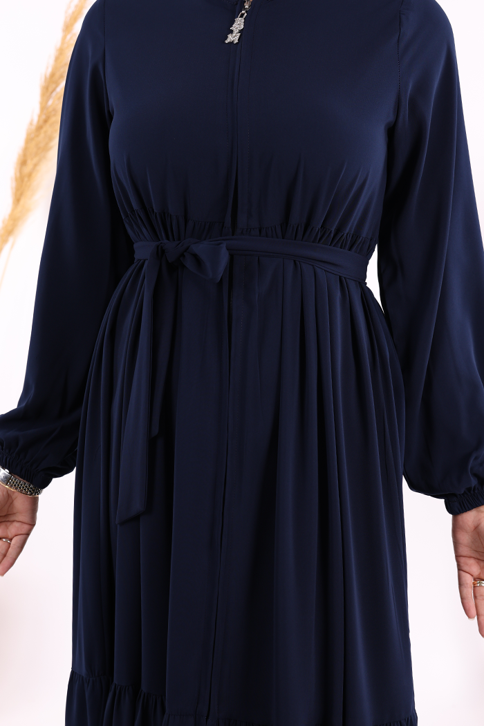 Fermuarlı Kol Manşetleri Lastikli Fırfırlı Elbise 6001 Lacivert
