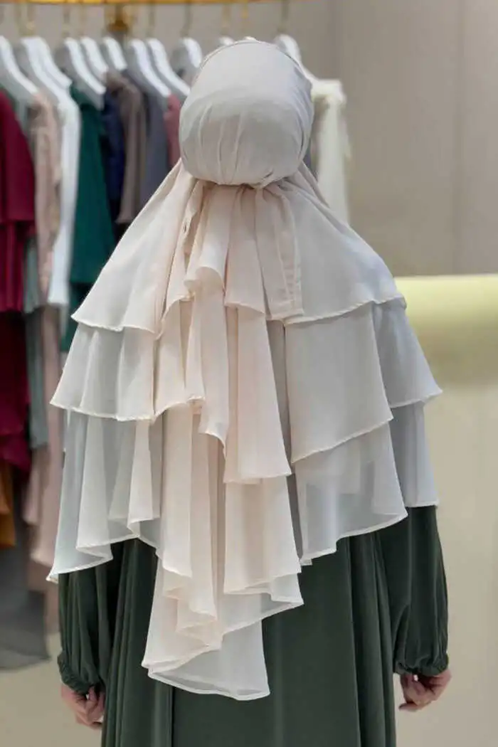 Peçeli 3 Katlı Şifon Sufle Şal 6012 Taş