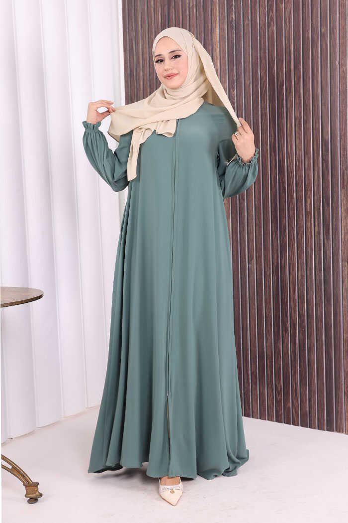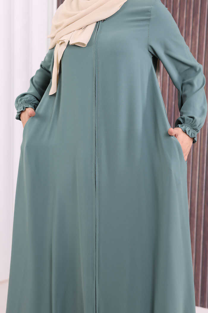 Fermuarlı Kol Manşetleri Büzgülü Mevlana Ferace 6007 Mint