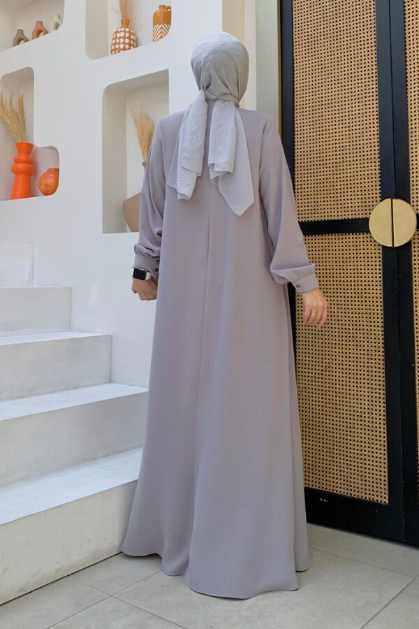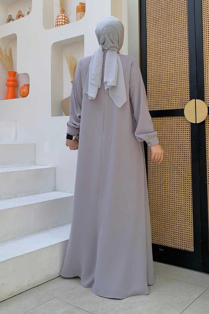 Çapraz Parça Görünümlü İncili Büyük Beden Elbise 3879-1 Gri