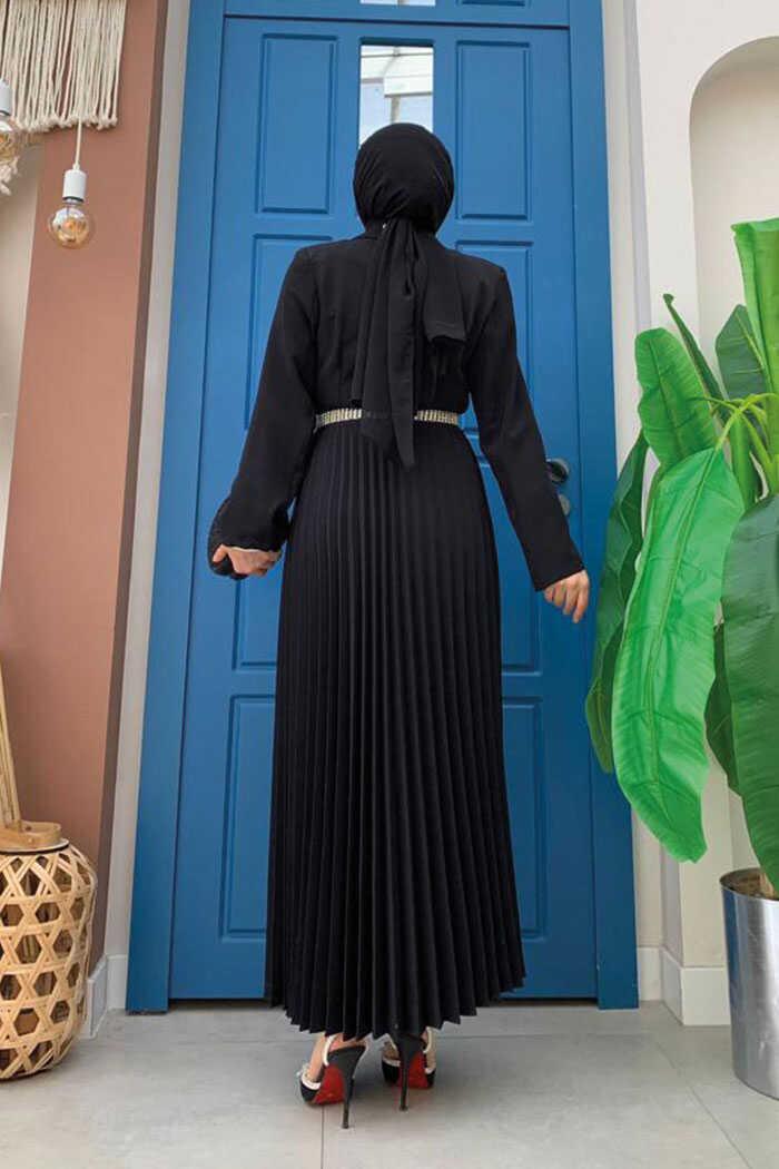 CEKET GÖRÜNÜMLÜ ETEĞİ PİLİSELİ ELBİSE