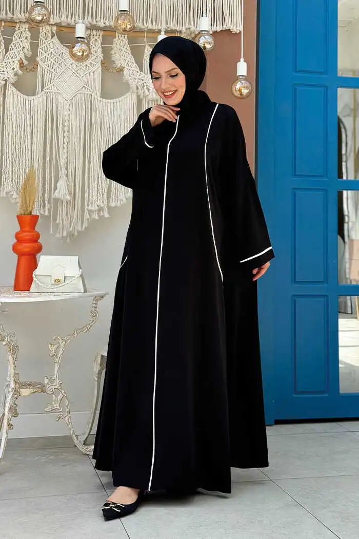 Cepli Şerit Detaylı Elbise 6018 Siyah