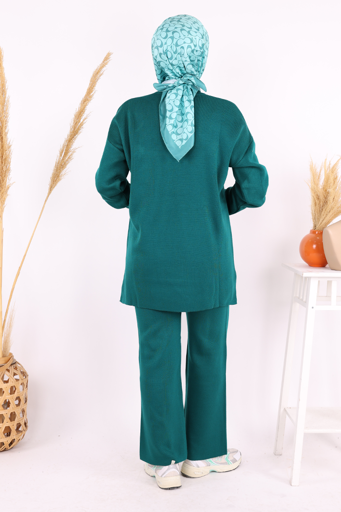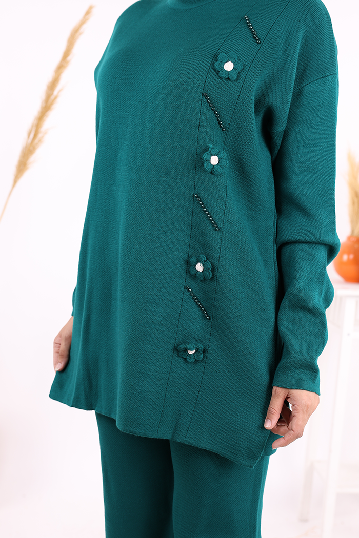 Çiçek Detaylı Triko Takım 1620 Zümrüt