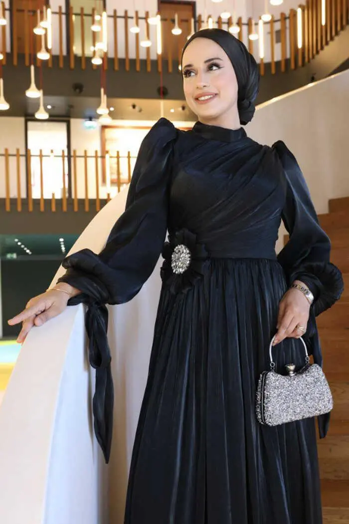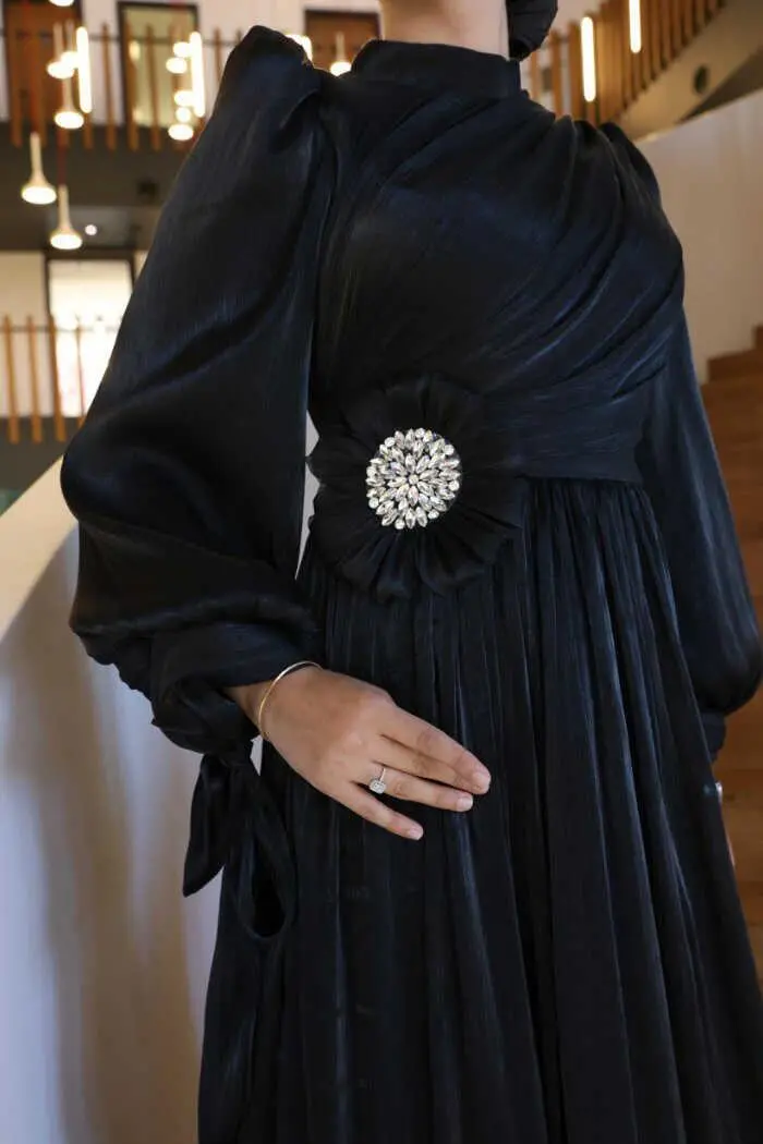 Çiçek Detaylı Valentino Abiye 7139 Siyah