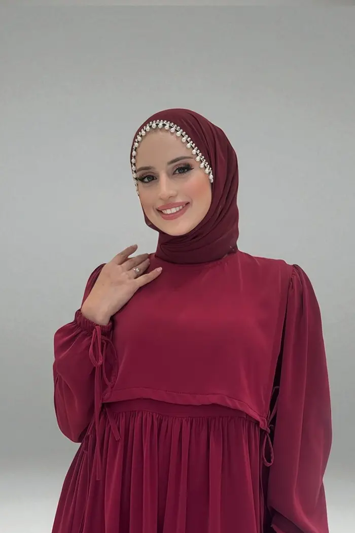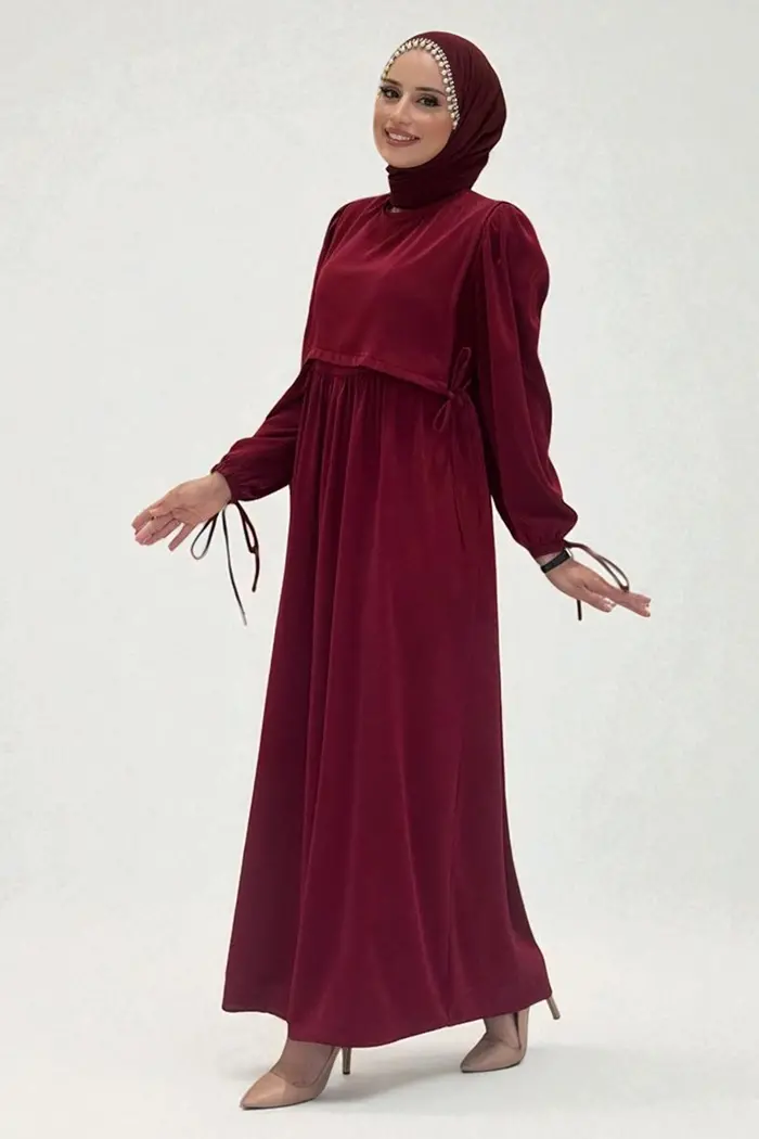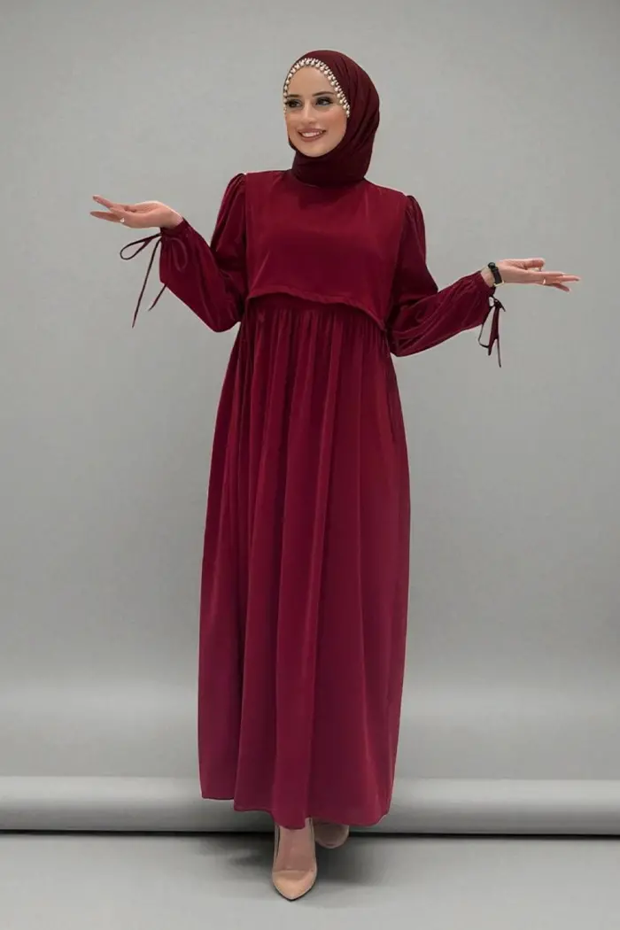 ÇİFT KATLI BAĞLAMA DETAY ELBİSE