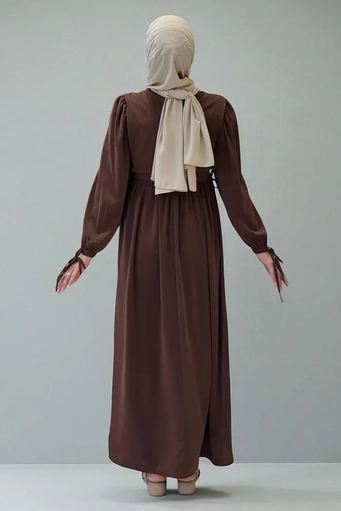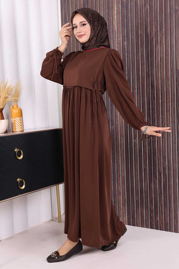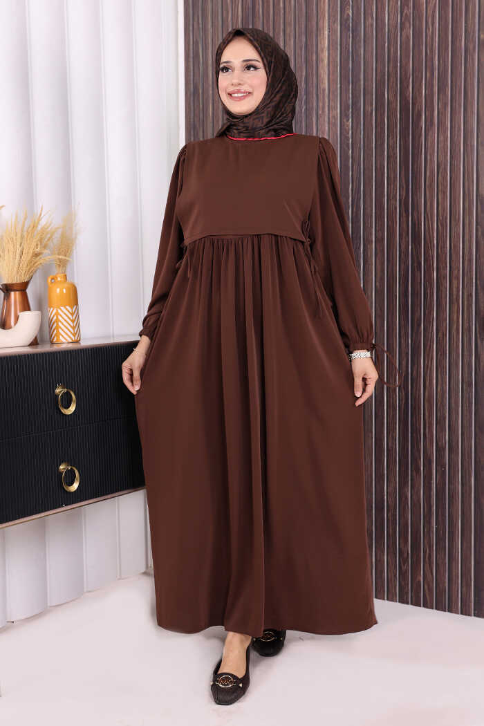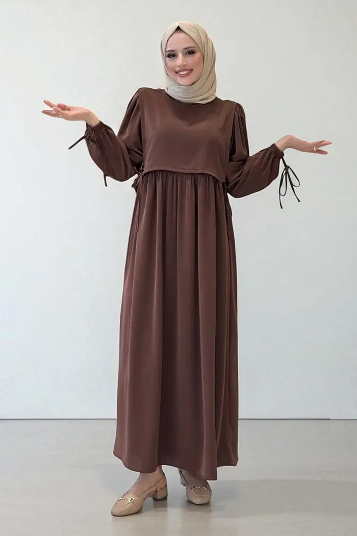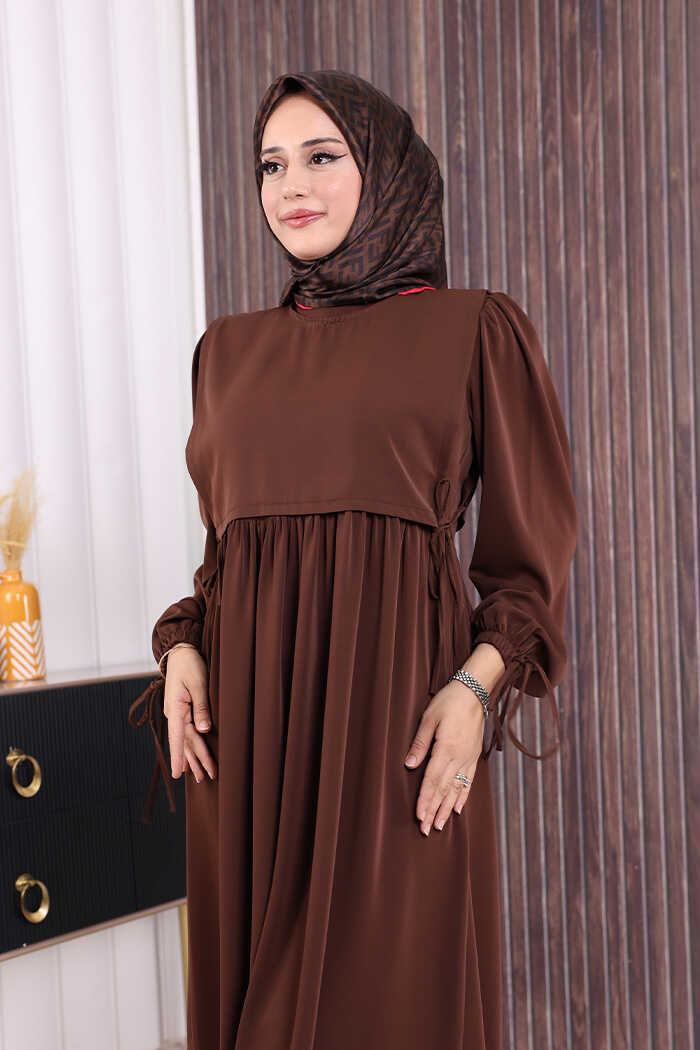 ÇİFT KATLI BAĞLAMA DETAY ELBİSE