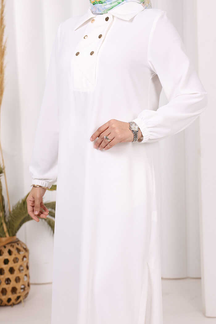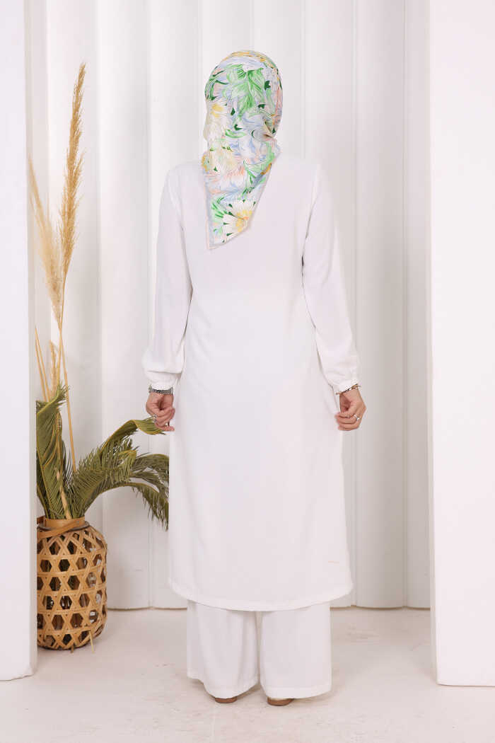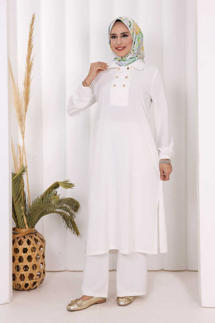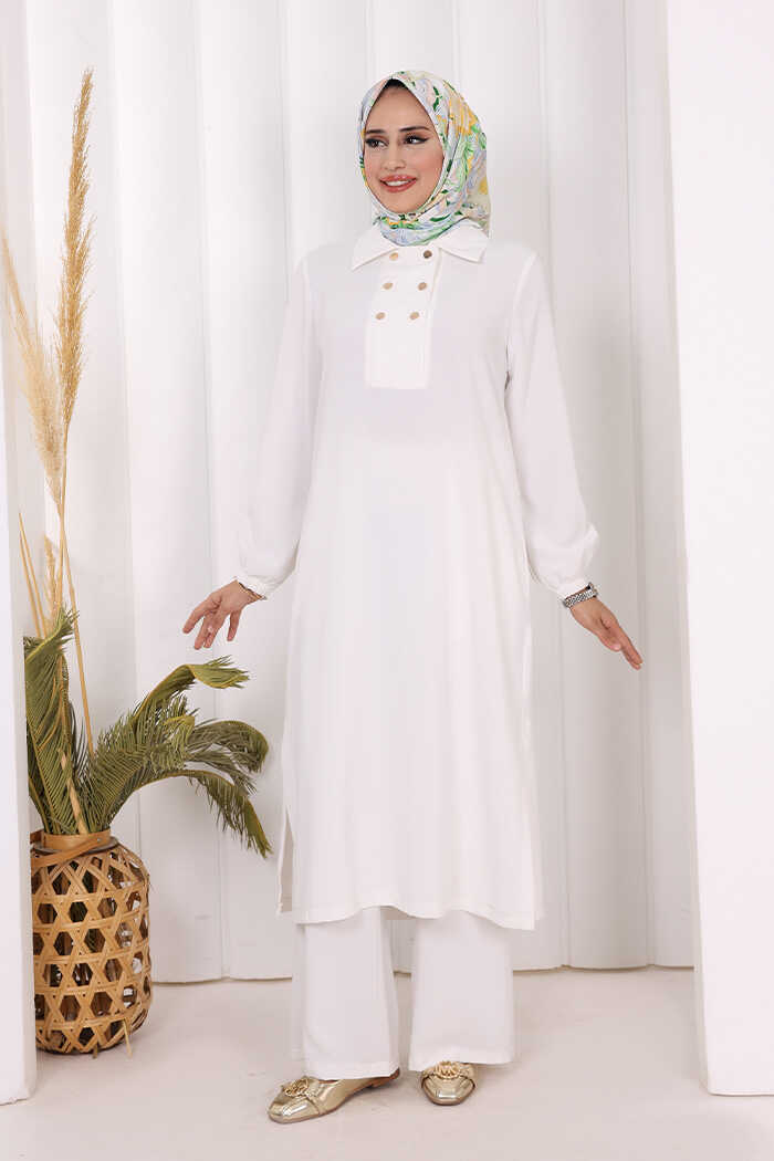 Çıt Çıt Düğme Detaylı Tunik Pantolon İkili Takım 8681 Ekru