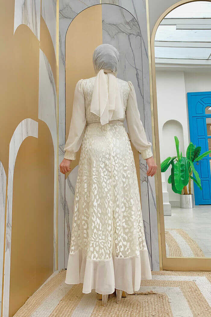 DANTEL GÖRÜNÜMLÜ FIRFIRLI ŞİFON ELBİSE