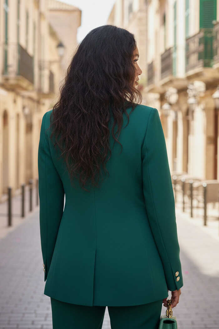 Düğme Detay Blazer Ceket Bol Pantolon Takım 8302 Zümrüt