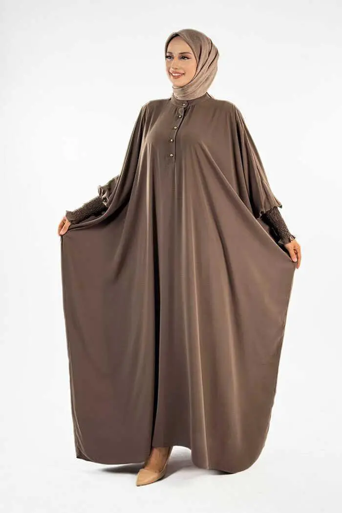 Düğme Detaylı Yarasakol Cilbab 6042 Kahverengi