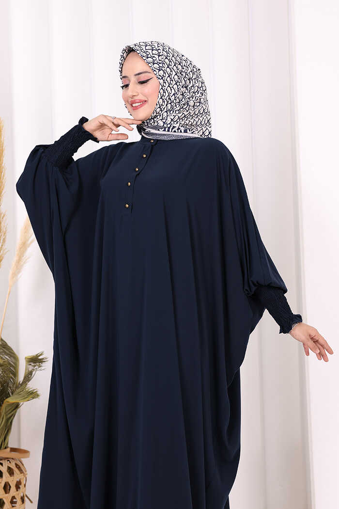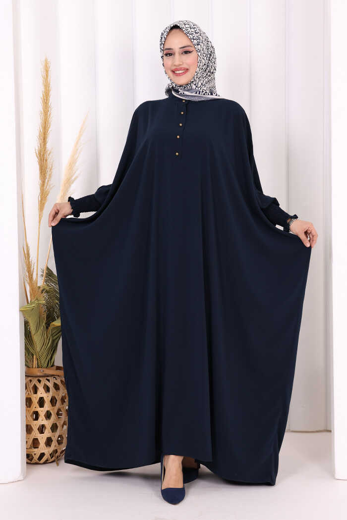 Düğme Detaylı Yarasakol Cilbab 6042 Lacivert