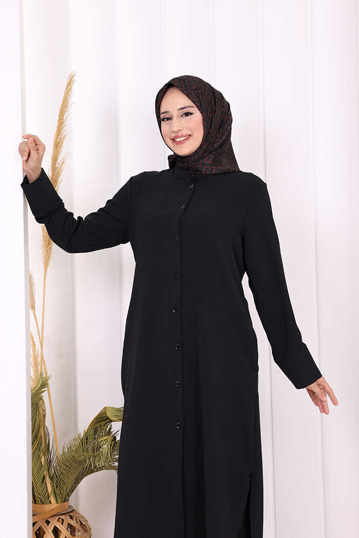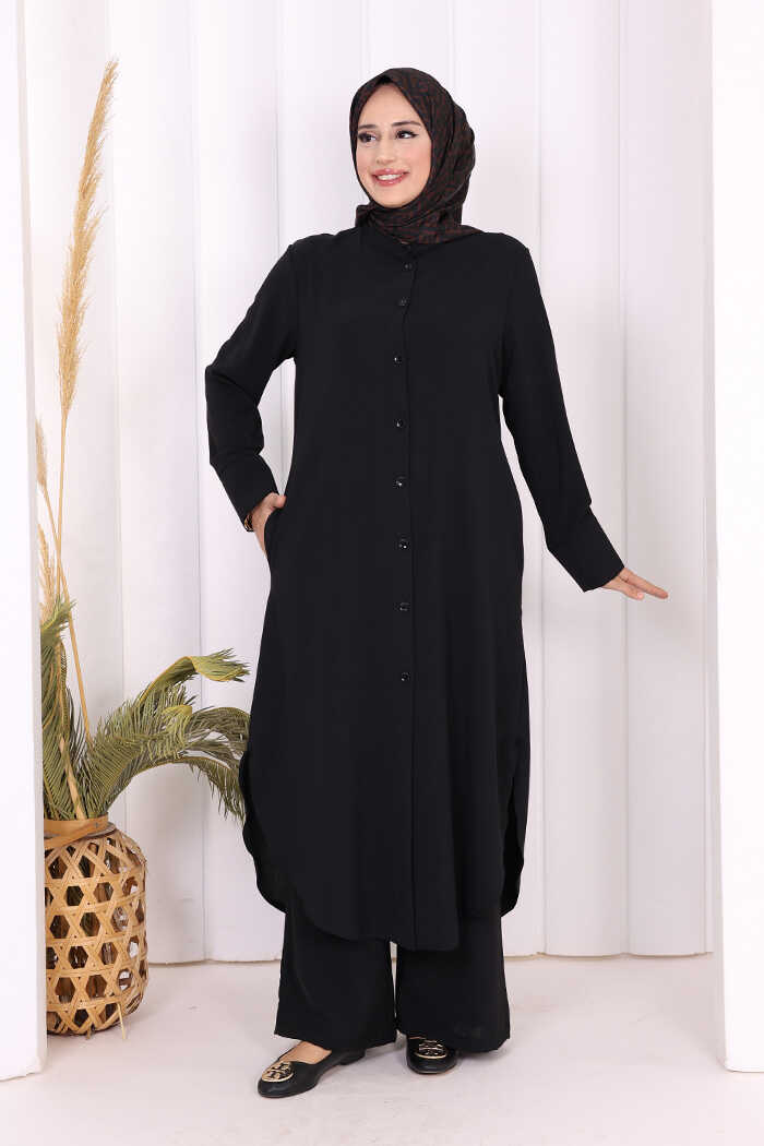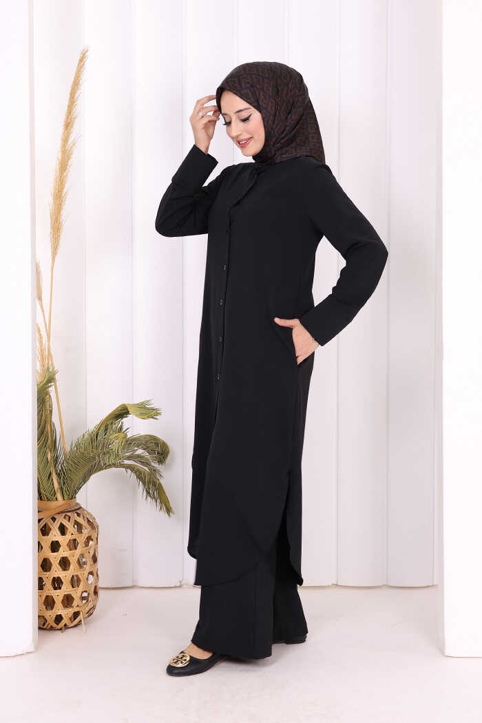 Düğmeli Cepli Tunik ve Pantolon İkili Takım 8682 Siyah