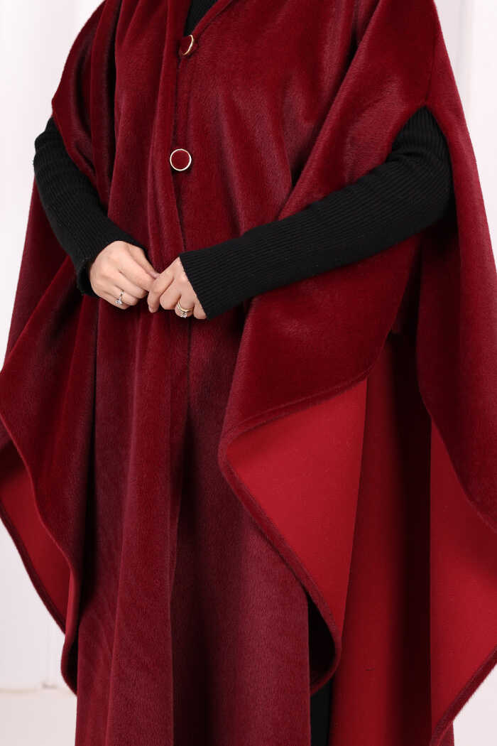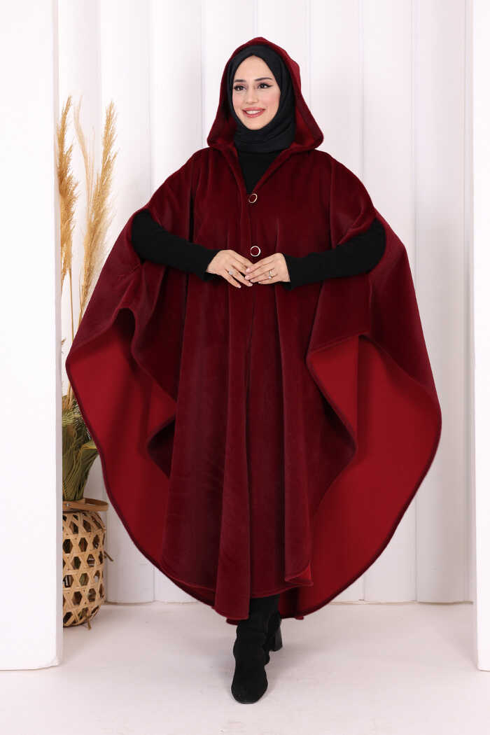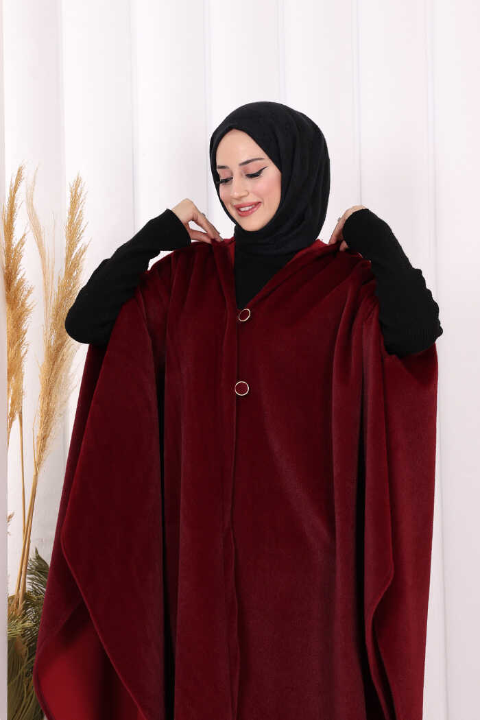 Foks Kumaş Kapşonlu Panço 70130 Bordo