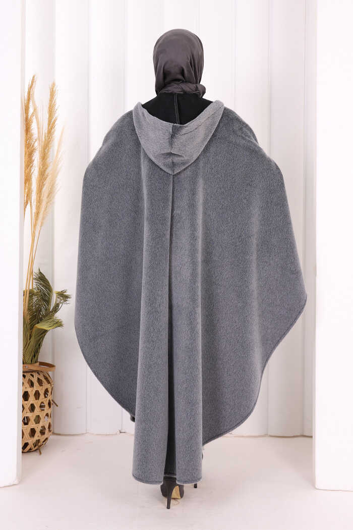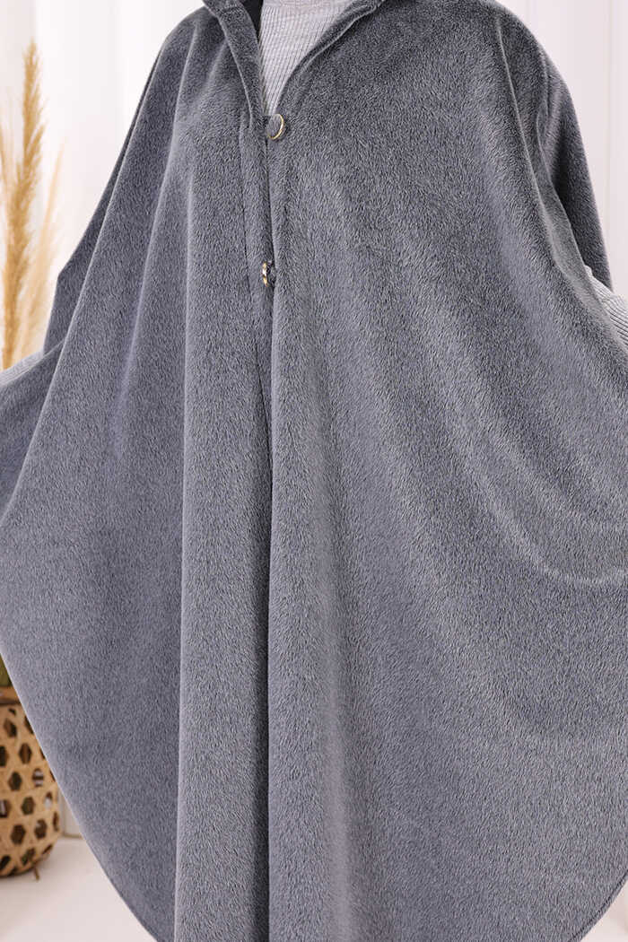 Foks Kumaş Kapşonlu Panço 70130 Gri