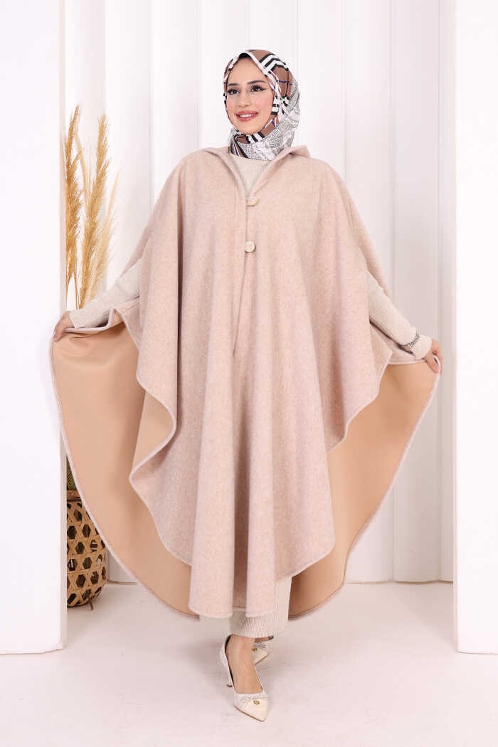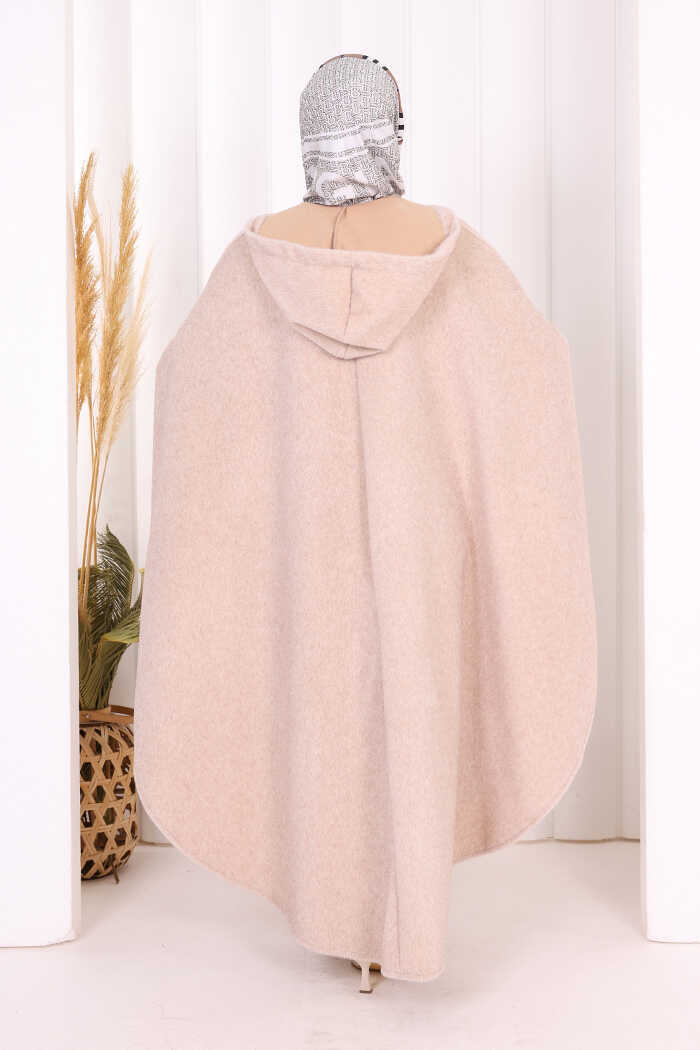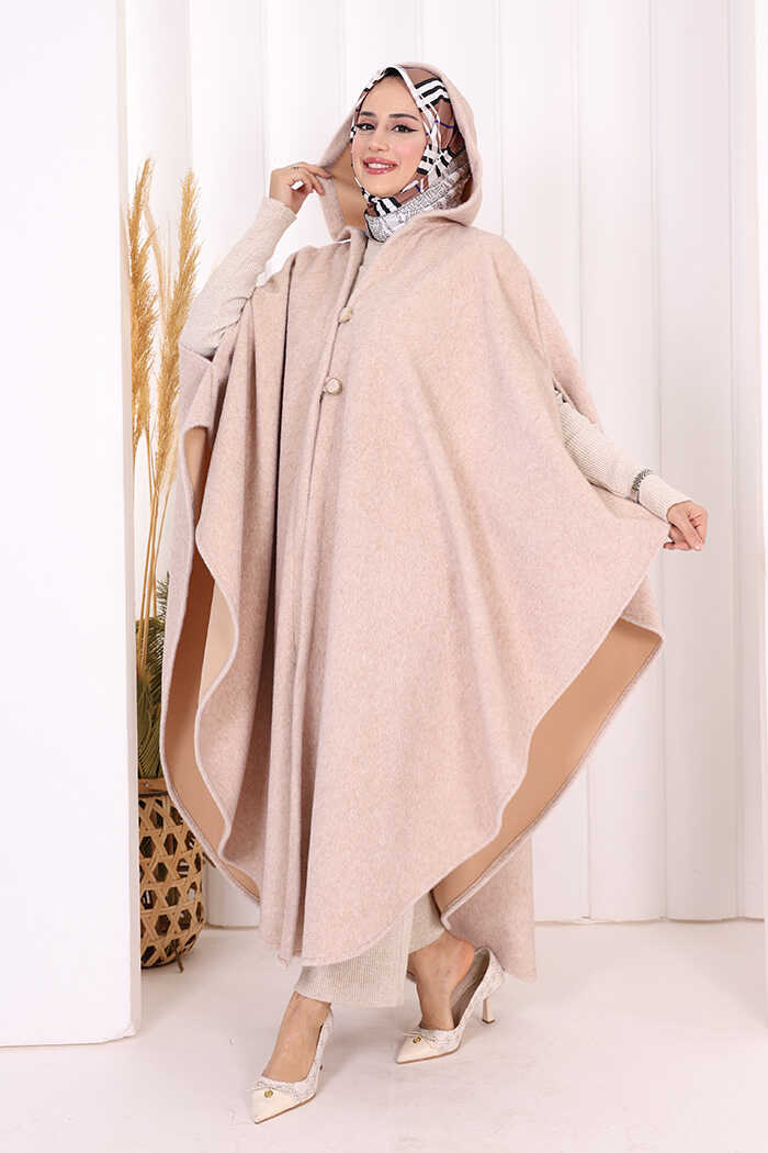 Foks Kumaş Kapşonlu Panço 70130 Taş