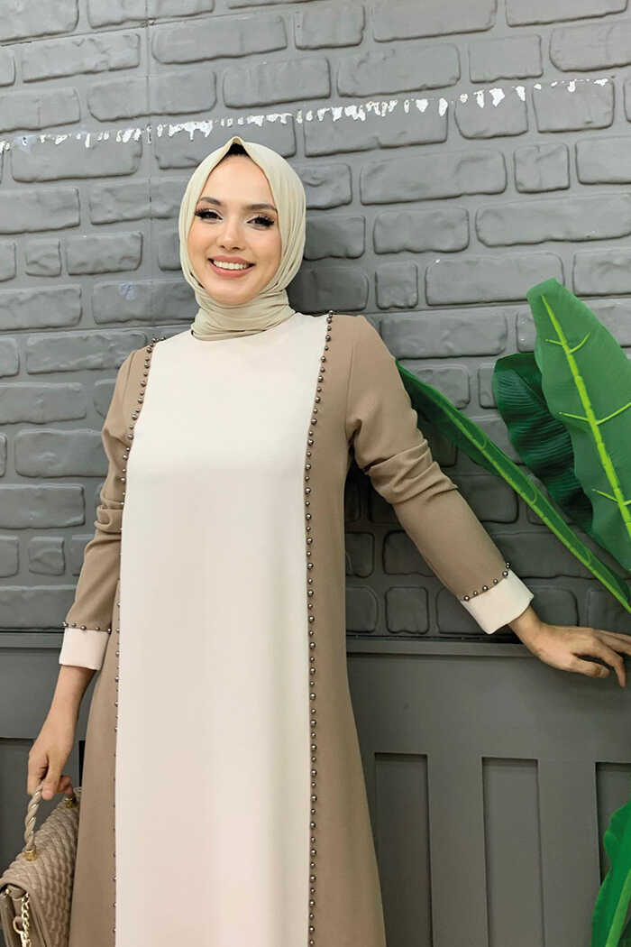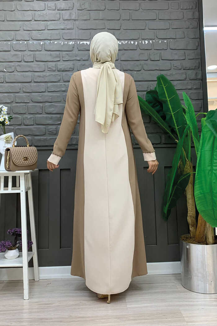 TAŞ BASKILI İKİ RENKLİ ELBİSE